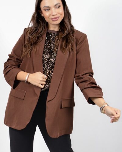 Καφέ σακάκι με σούρα στο μανίκι