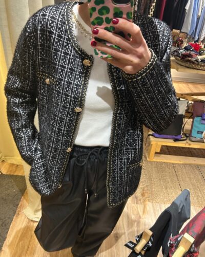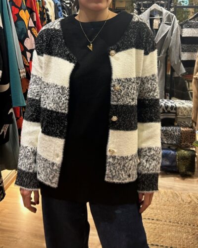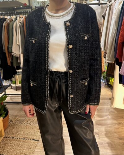 Μαύρη ζακέτα με άσπρες λεπτομέρειες