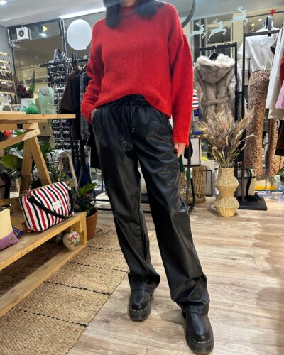 Παντελόνι δερματίνη με λάστιχο στη μέση