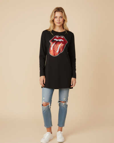 - Μπλούζα: Χαλαρή, με μακριά μανίκια