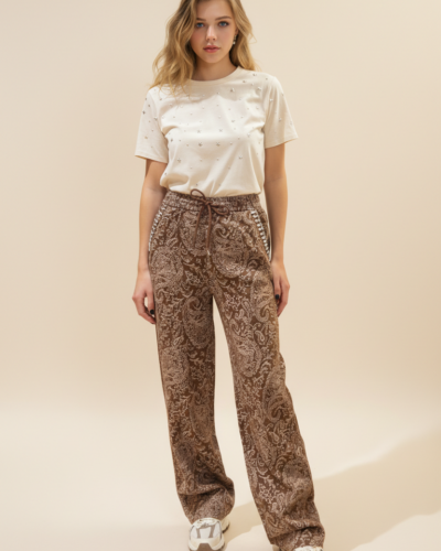 34,50 €Original price was: 34,50 €.24,00 €Η τρέχουσα τιμή είναι: 24,00 €.Ανανεώστε το καθημερινό σας στυλ με αυτό το κομψό σετ που συνδυάζει άνεση και διακριτική λάμψη. Η μπλούζα και η παντελόνα είναι σχεδιασμένες σε άνετη, ριχτή γραμμή. Τα μικρά, διακριτικά τρουκς προσθέτουν μια διακριτική πινελιά λάμψης χωρίς να χάνεται η απλότητα του σχεδίου.