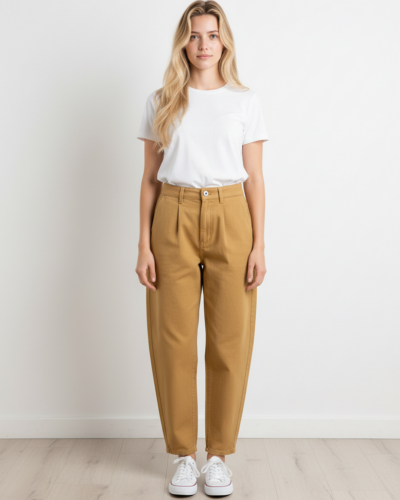96,00 €Original price was: 96,00 €.67,20 €Η τρέχουσα τιμή είναι: 67,20 €.Παντελόνι Tencel της εταιρείας Pepaloves με πιέτες, ελαστική ζώνη στη μέση στο πίσω μέρος, πλαϊνές τσέπες και τελείωμα κάτω από τον αστράγαλο.- Οι πιέτες δημιουργούν κομψό αποτέλεσμα
