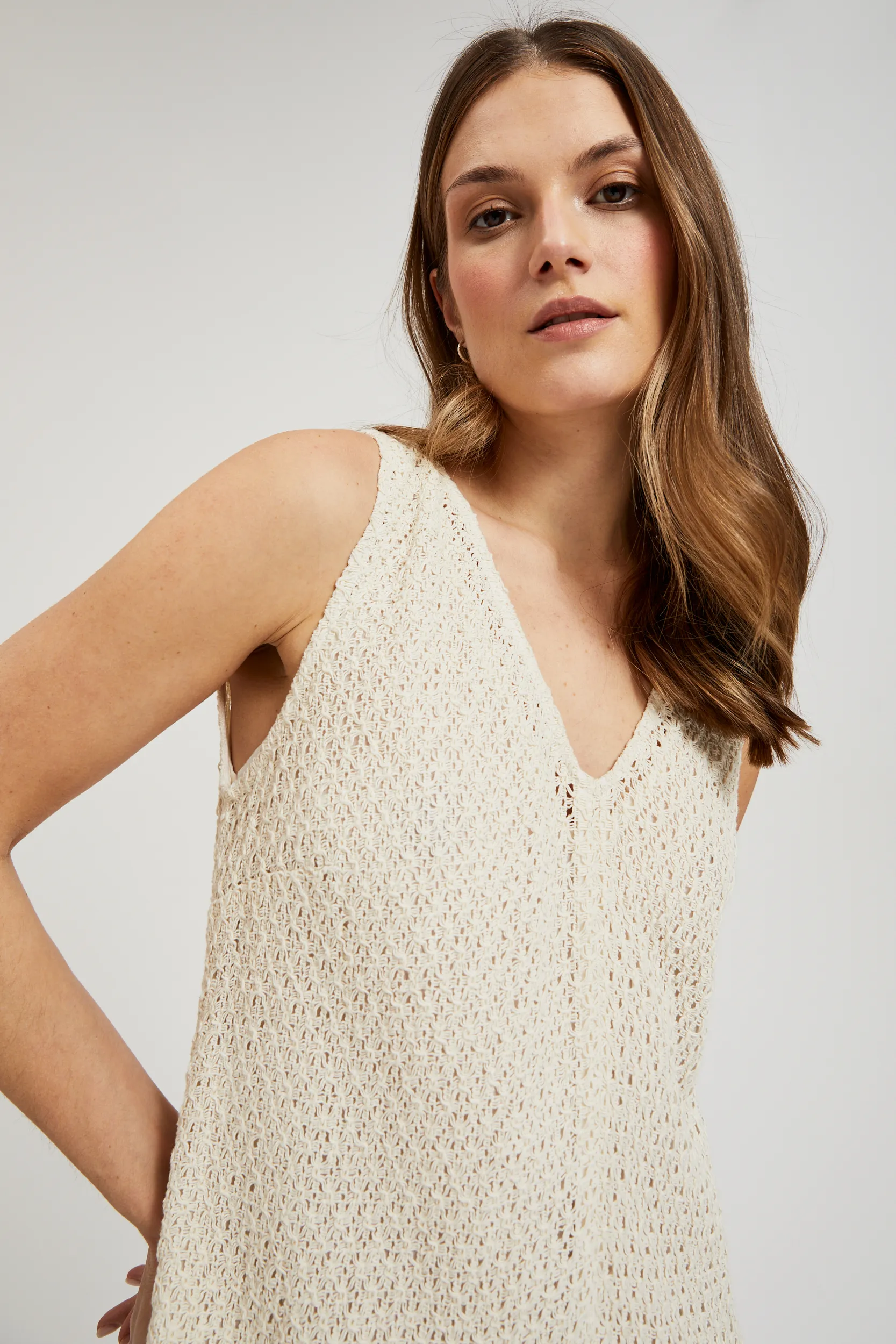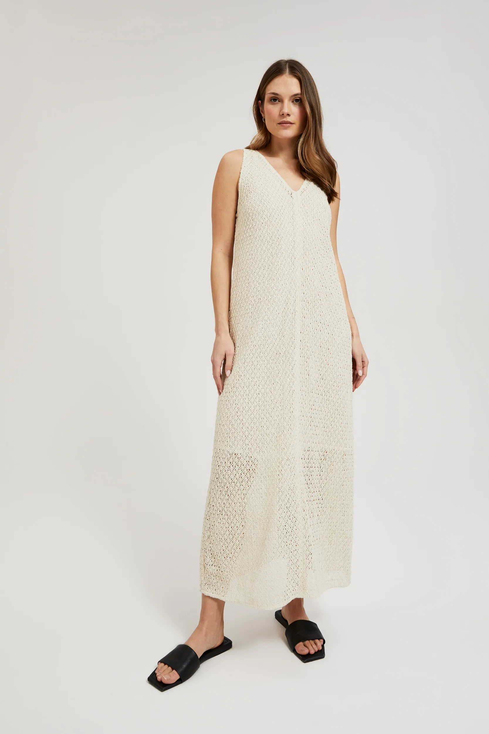 Αμάνικο φόρεμα σε ίσια γραμμή. Κομψό, ιδανική επιλογή για όλες τις ώρες της μέρας. Συνδύασέ το με σανδάλια, εσπαντριίγιες ή πλατφόρμα για μια καλοκαιρινή βραδινή έξοδο.