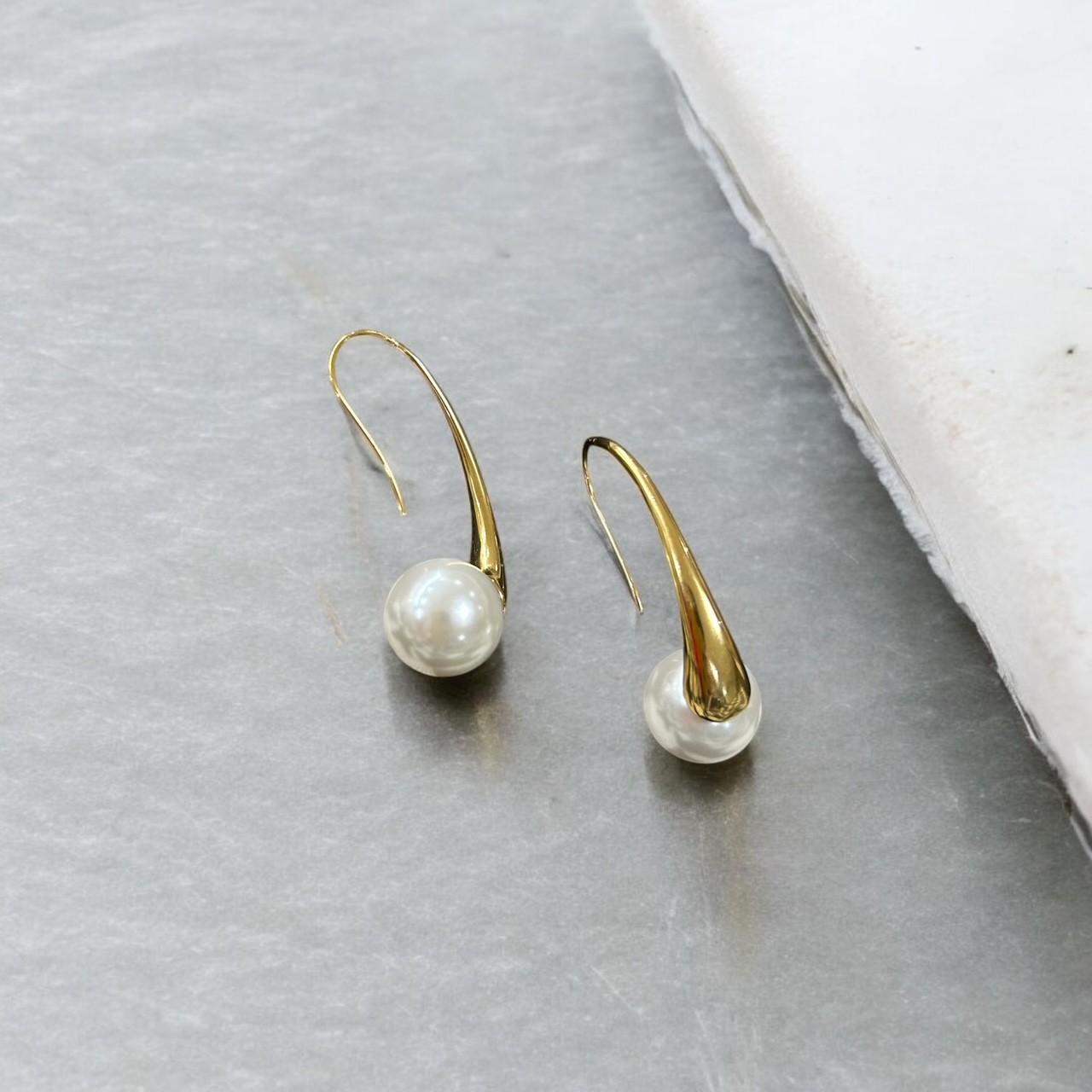 Κρεμαστά σκουλαρίκια από ανοξείδωτο ατσάλι σε χρυσή απόχρωση, διακοσμημένα με κομψή πέρλα που αποπνέουν κλασική φινέτσα. Ο εκλεπτυσμένος σχεδιασμός τους συνδυάζει τη μοντέρνα αισθητική του χρυσού ατσαλιού με την διαχρονική γοητεία της πέρλας, δημιουργώντας ένα κόσμημα που τραβάει τα βλέμματα.