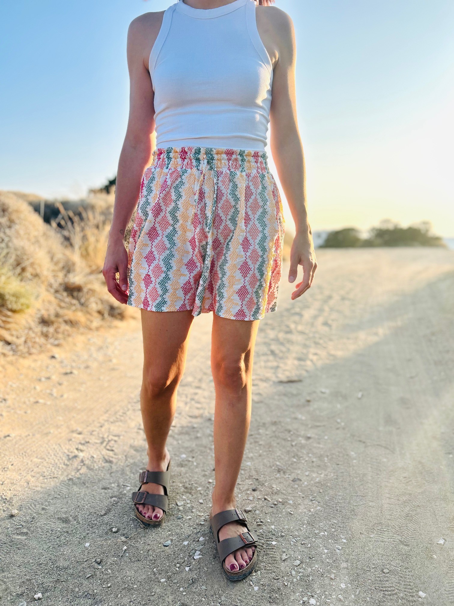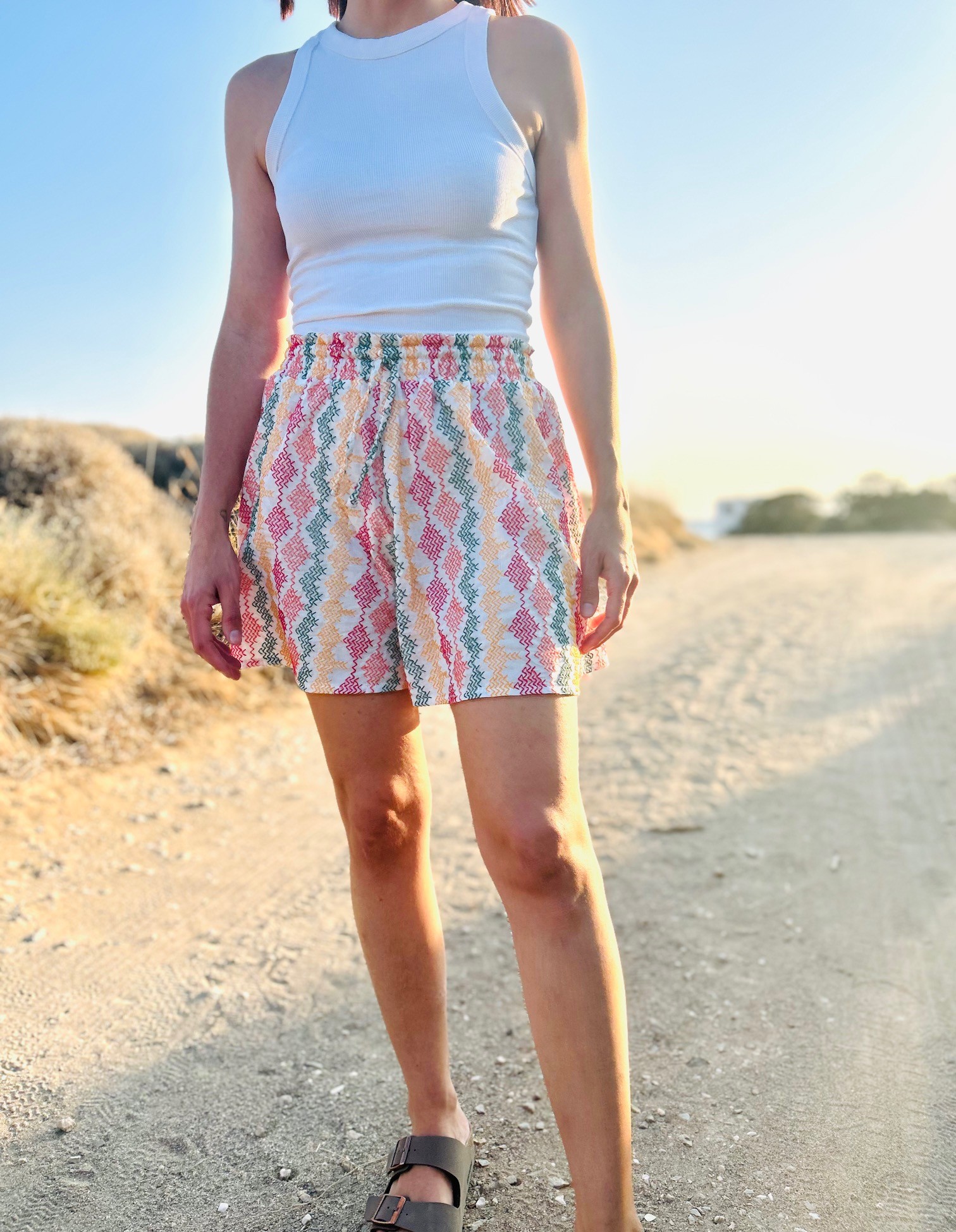Αναδείξτε την κομψότητά σας με αυτό το μοναδικό βαμβακερό σορτς, κεντημένο με minimal σχέδια σε απαλές, αποχρώσεις. Θα γίνει το αγαπημένο σου για όλες τις καλοκαιρινές σου εμφανίσεις. Συνδυάζει το boho στυλ με εξαιρετικά άνετη εφαρμογή!