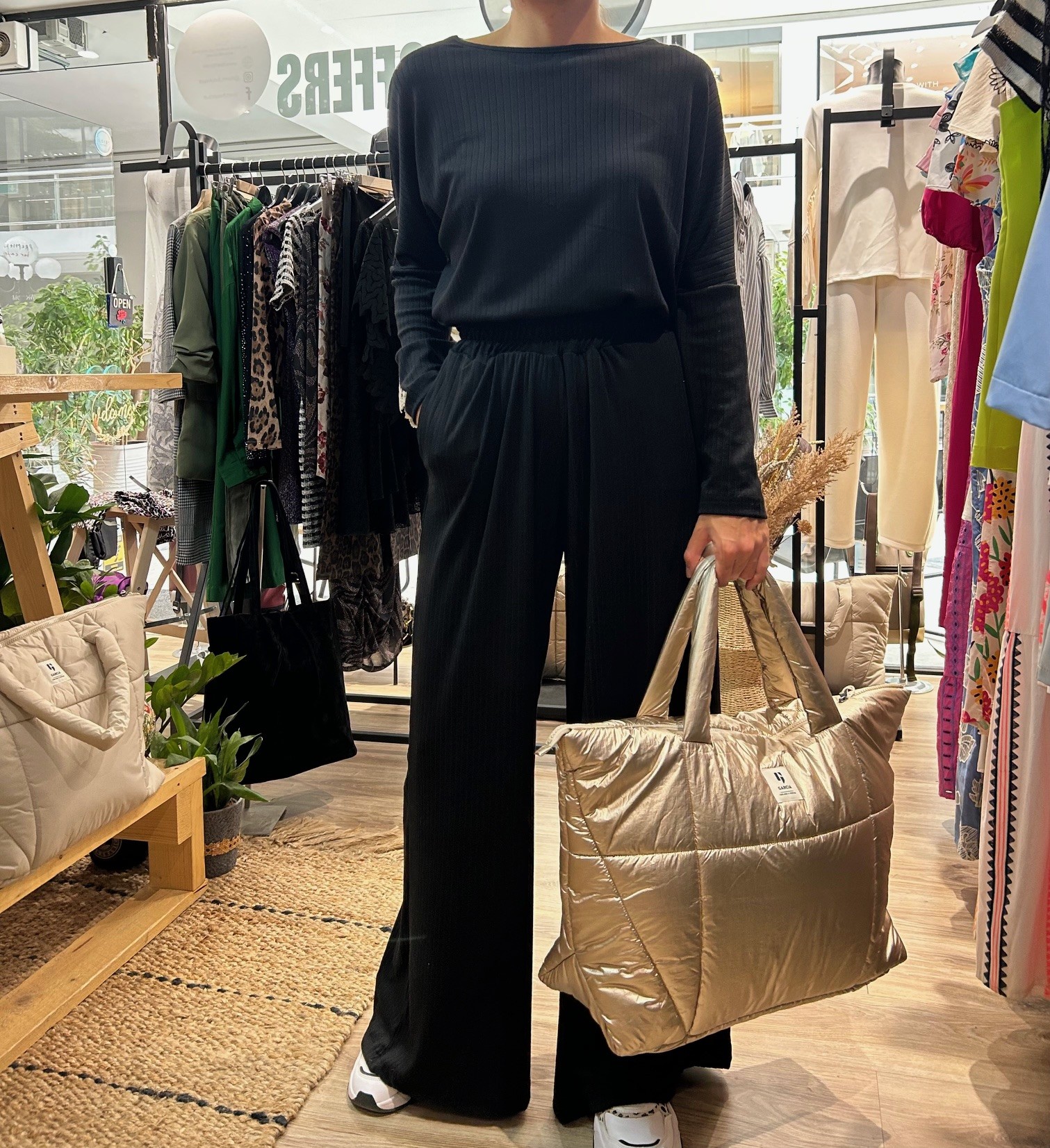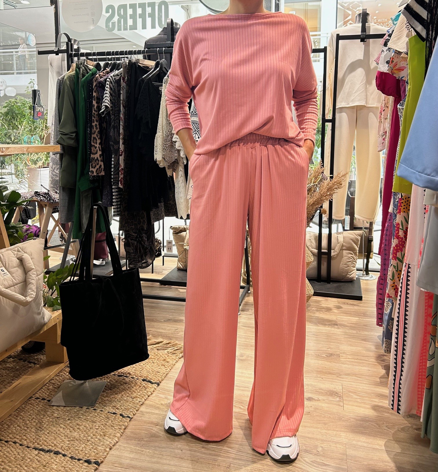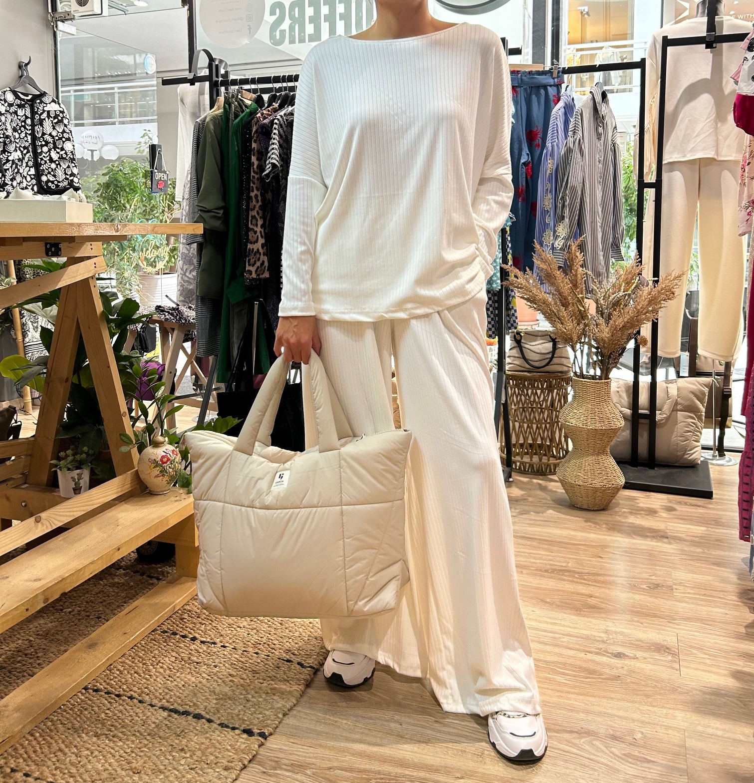 Η ψηλόμεση παντελόνα έχει λάστιχο στη μέση, και η μπλούζα έχει άνετη και μοντέρνα γραμμή. Ένα outfit που μπορείς να φορέσεις από το πρωί μέχρι το βράδυ, απλά αλλάζοντας τα αξεσουάρ σου.