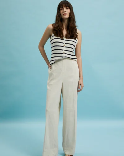 Αυτό το καλοκαίρι παραμείνετε άνετες και κομψές με αυτό το φαρδύ cropped παντελόνι με ελαστική μέση και με ιδιαίτερο σχέδιο εμπνευσμένο από τη δεκαετία του ’70!