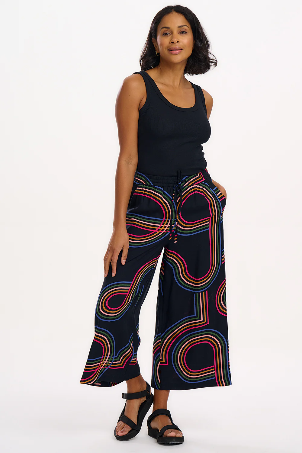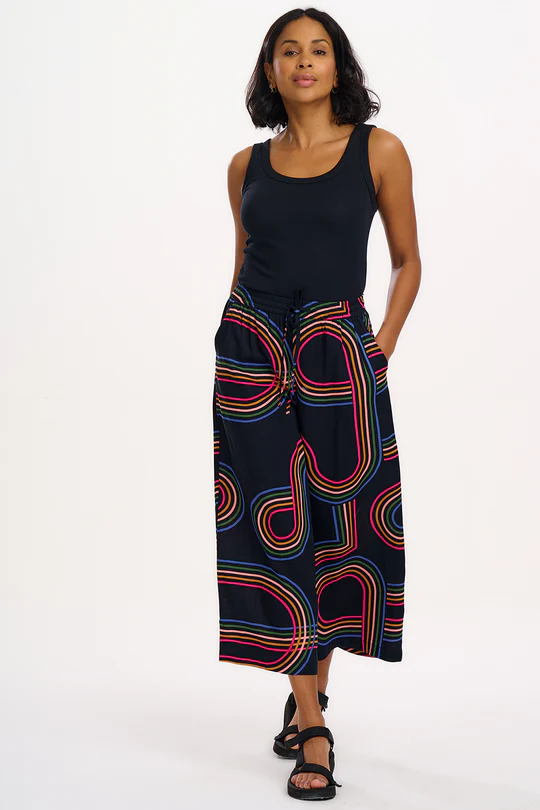 Cropped Wide Leg Trousers – Black, Retro Racer- Sugarhill Brighton