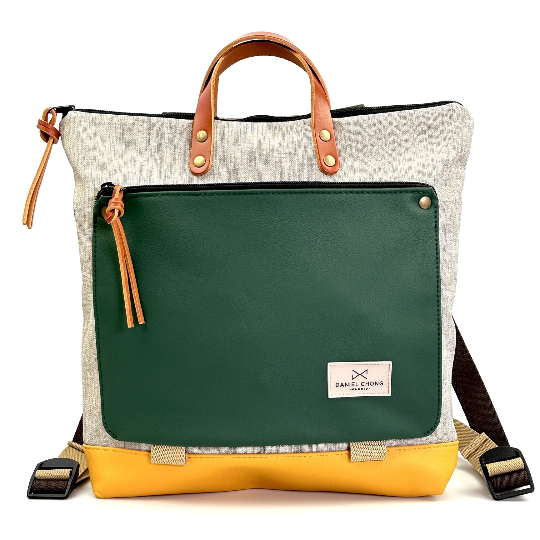 Διαθέτει χερούλι από φυτικό δέρμα. Εξαιρετικά ανθεκτικοί, βαμβακεροί ρυθμιζόμενοι ιμάντες. Πρακτική εσωτερική τσέπη. Μπροστινή τσέπη με φερμουάρ και πίσω τσέπη με φερμουάρ. Διαθέτει χώρο για φορητό υπολογιστή (έως 13”) ή tablet.