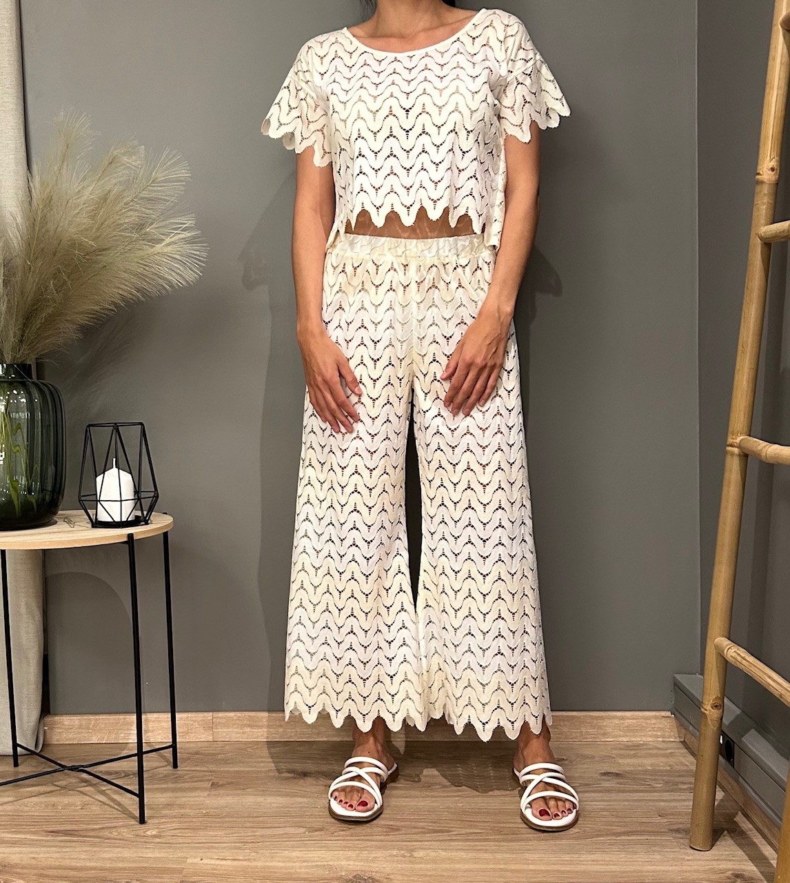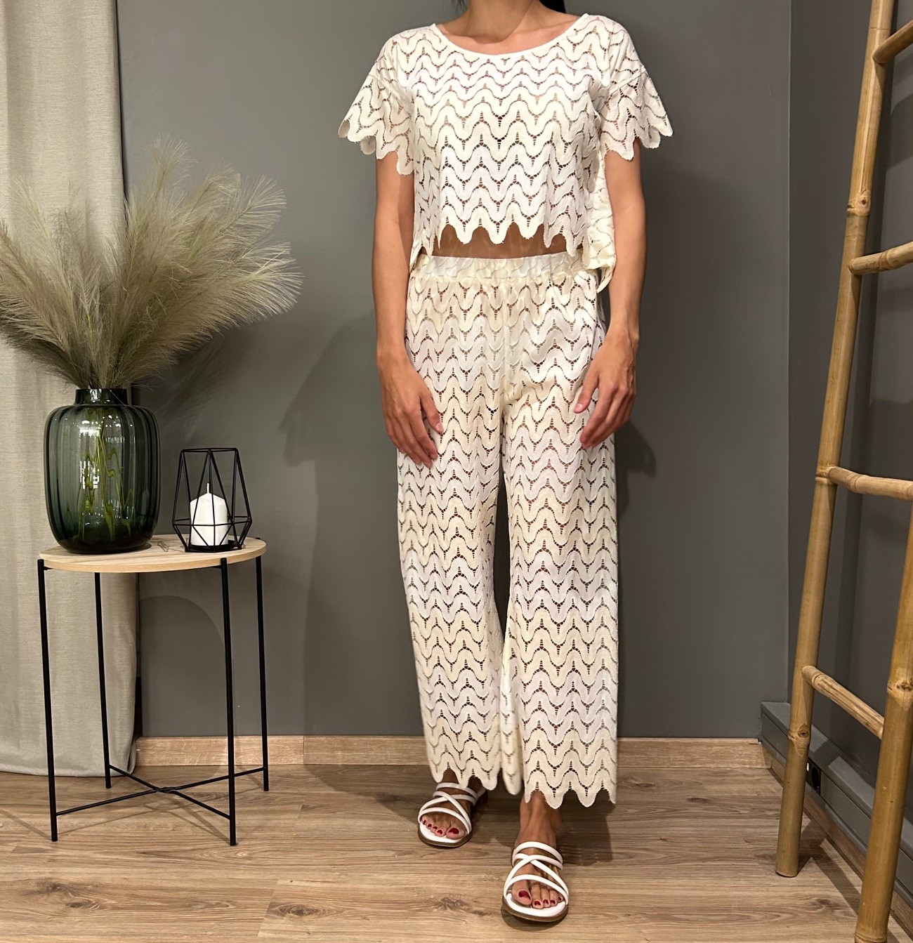 Δαντελένια παντελόνα της Victoria Haitoglou σε ίσια γραμμή που αγκαλιάζει κομψά τη σιλουέτα σας.