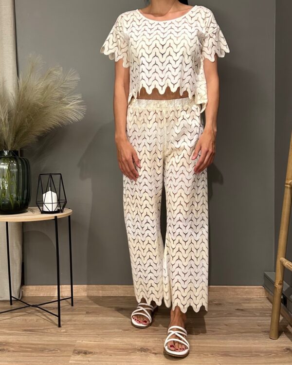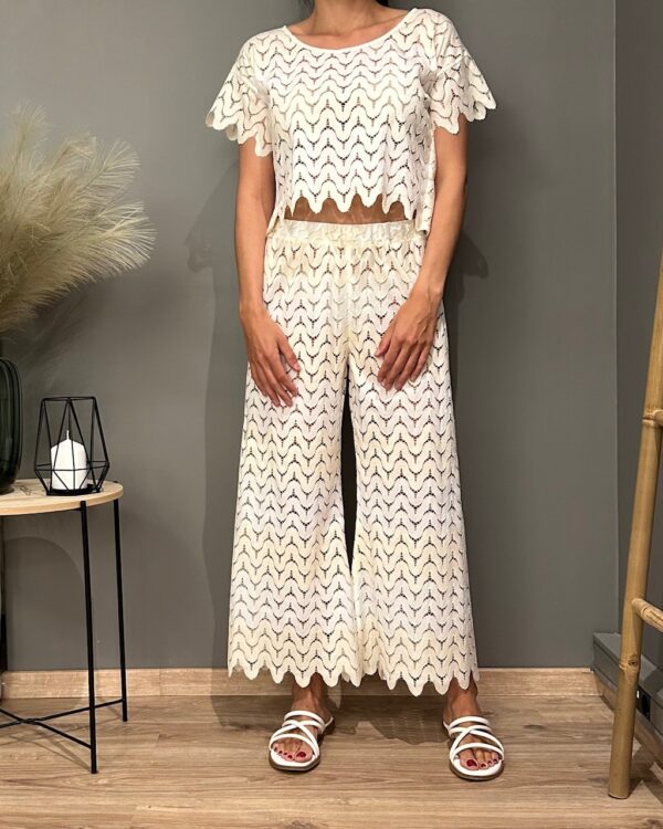 Δαντελένια παντελόνα της Victoria Haitoglou σε ίσια γραμμή που αγκαλιάζει κομψά τη σιλουέτα σας.