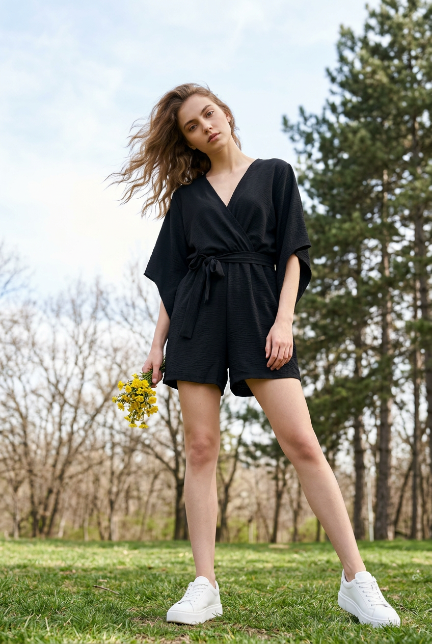 Το ολόσωμο σορτς διαθέτει κομψό V ντεκολτέ που αναδεικνύει τη θηλυκότητα, ενώ το λάστιχο στη μέση προσφέρει τέλεια εφαρμογή και άνεση! Επιπλέον διαθέτει και ζώνη για ακόμα καλύτερη εφαρμογή.