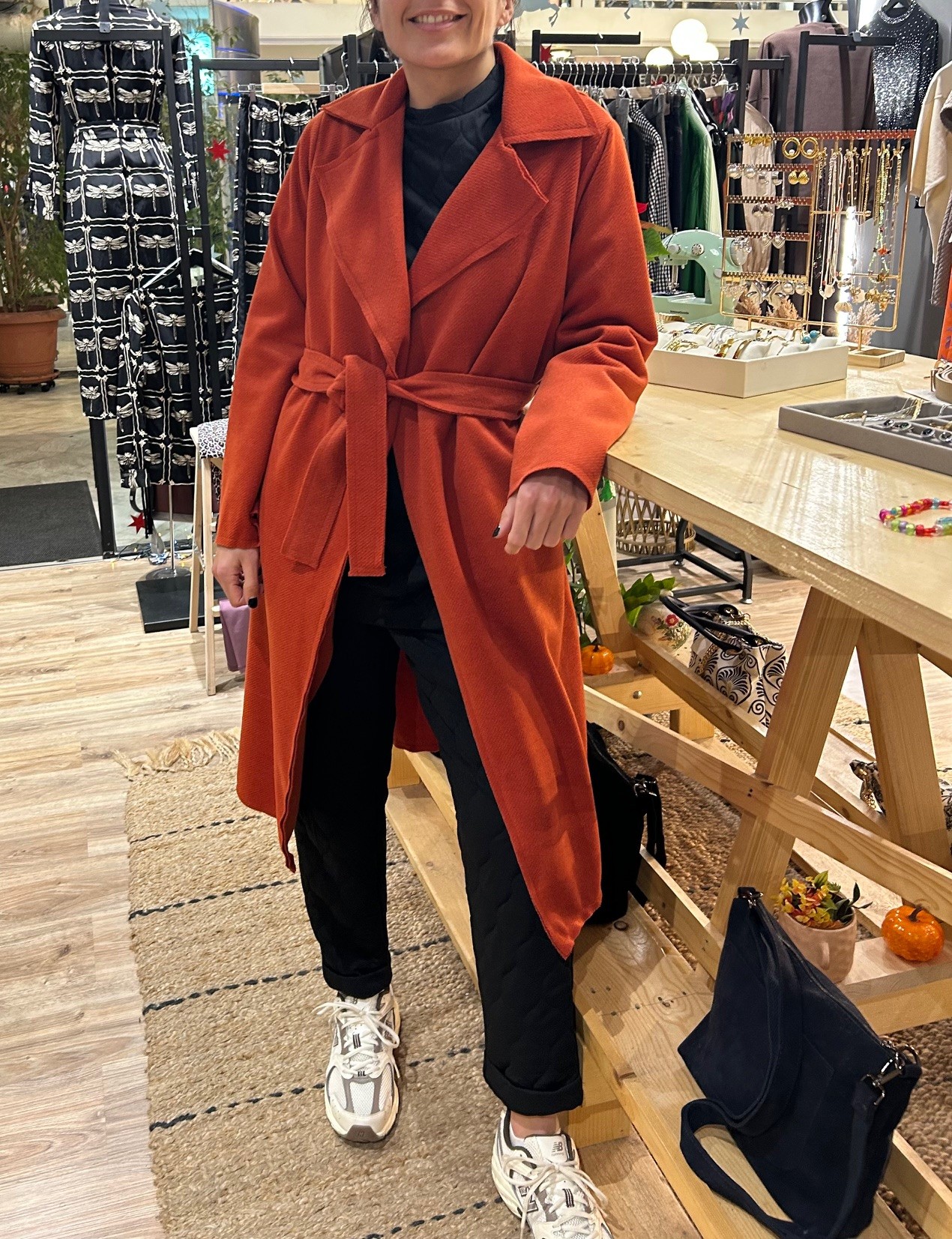 Κομψή παλτοζακέτα με ζώνη που προσφέρει άνεση και στυλ. Είναι εξαιρετικά πρακτική κι έχει εντυπωσιακό χρώμα που αναβαθμίζει και δίνει χρώμα στο outfit! Η ζώνη στη μέση επιτρέπει προσαρμοσμένη εφαρμογή.
