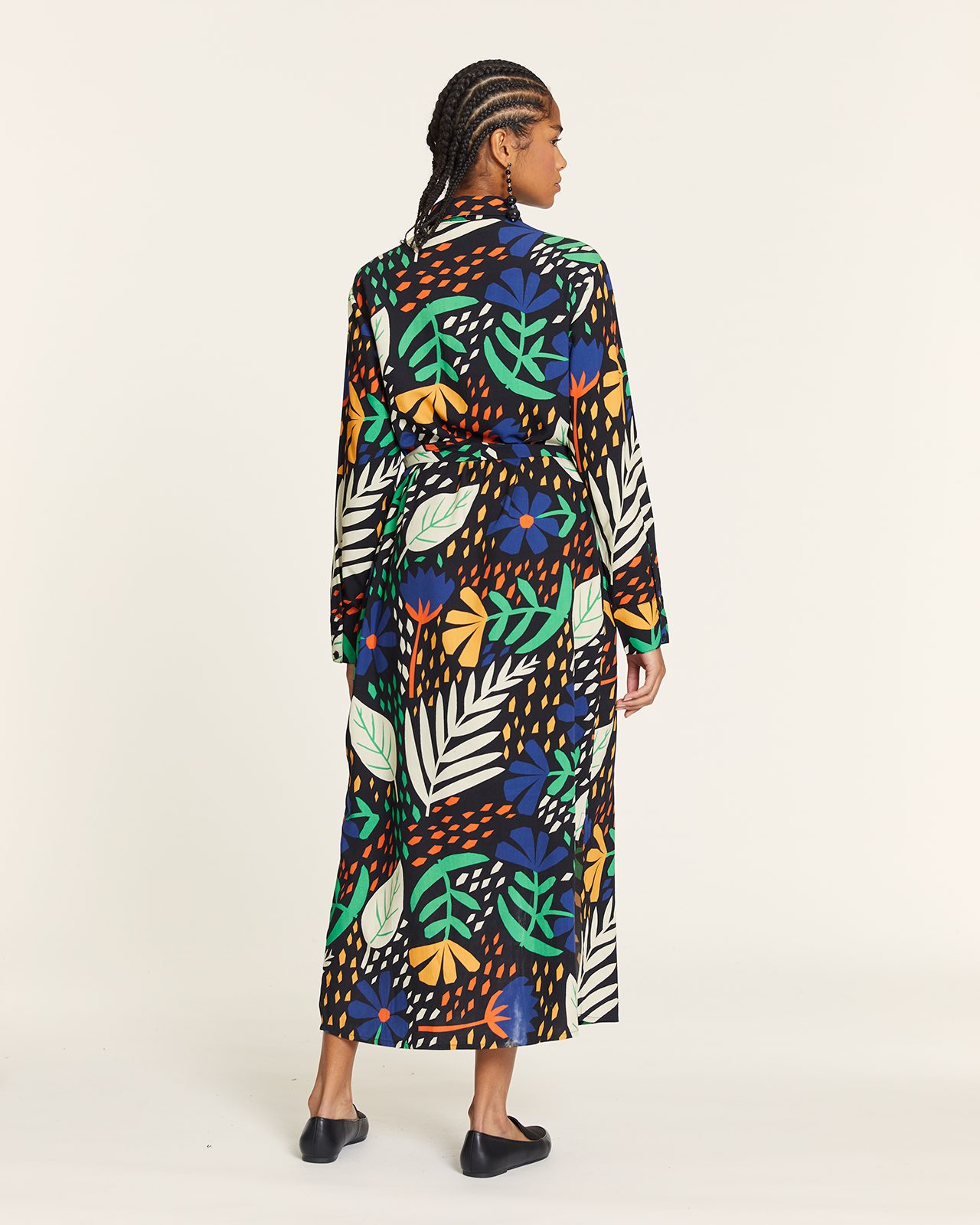 - Η button-down σχεδίαση επιτρέπει ευελιξία: φοριέται κλειστό ως φόρεμα ή ανοιχτό σαν ελαφρύ πανωφόρι