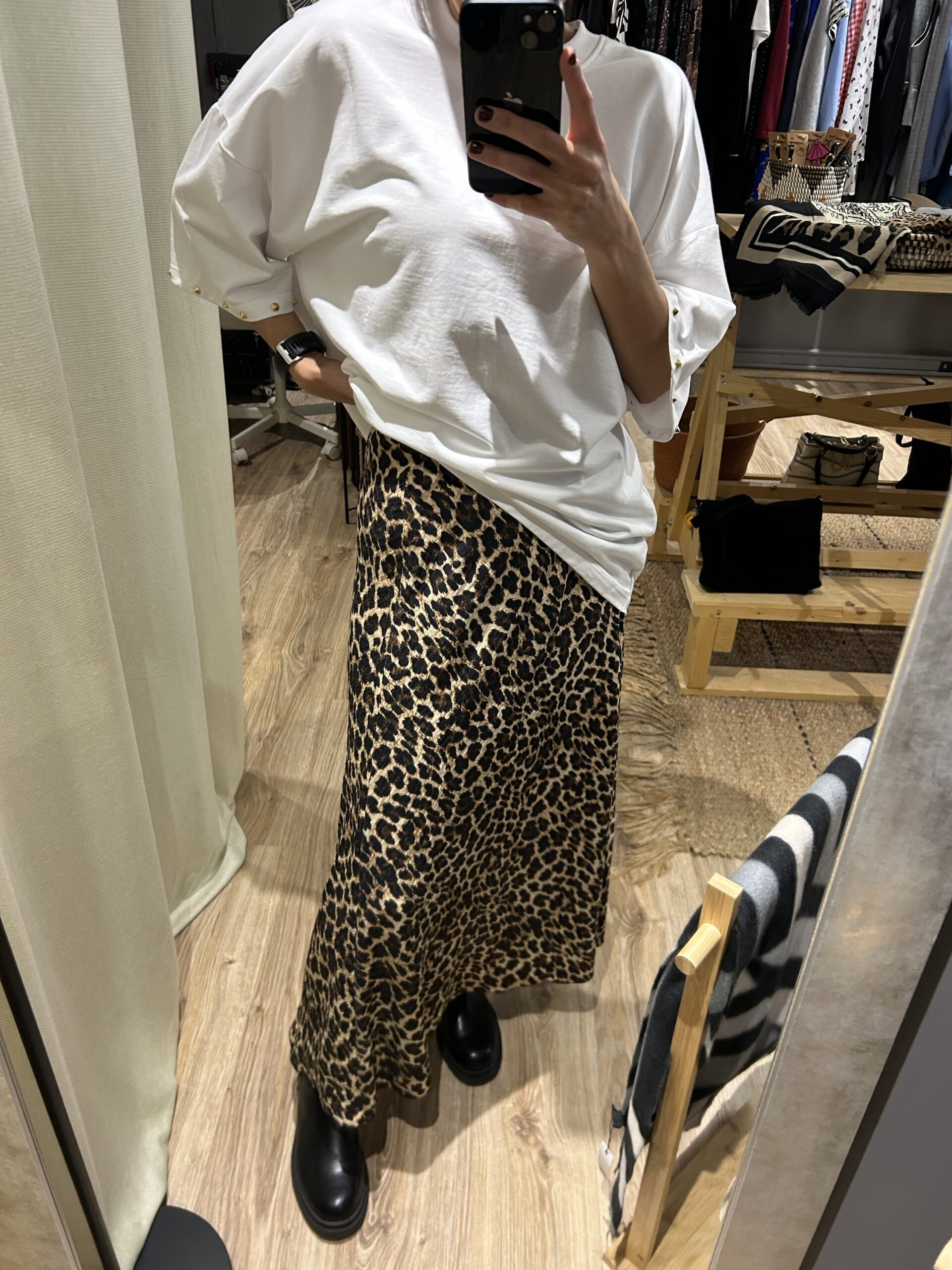 Απογείωσε το στιλ σου με αυτή τη statement λεοπάρ φούστα, ιδανική για εντυπωσιακές εμφανίσεις από το πρωί μέχρι το βράδυ. Ένα διαχρονικό κομμάτι με κομψή γραμμή που αναδεικνύει όμορφα το σώμα. Συνδυάζεται τέλεια με basic tops, πουκάμισα ή και oversized πλεκτά για πιο χαλαρές εμφανίσεις. Διαθέτει λάστιχο στη μέση.