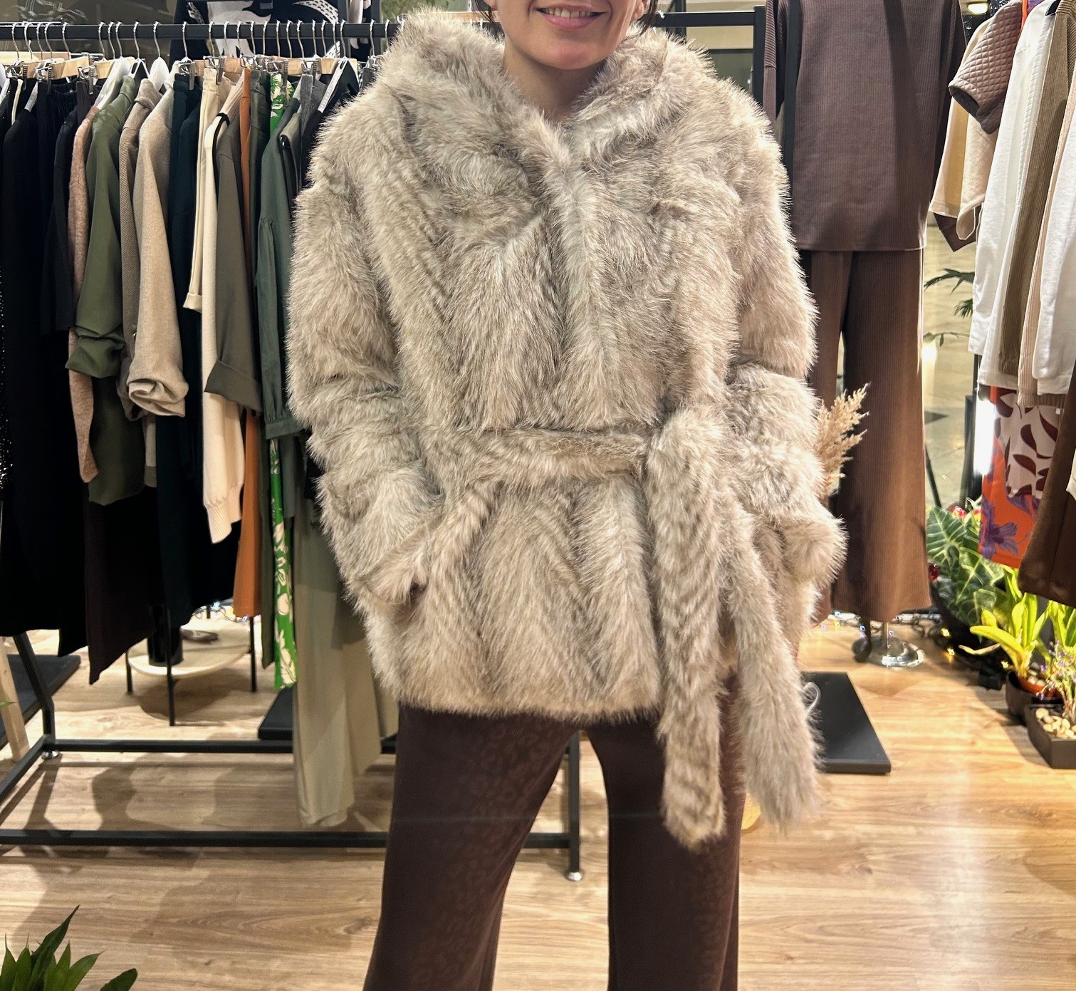 Κομψή και ζεστή γούνα, σχεδιασμένη για εντυπωσιακές χειμερινές εμφανίσεις. Διαθέτει τσέπες και αποσπώμενη ζώνη. Κλείνει με κουμπιά, εξασφαλίζοντας άνεση και σταθερότητα, ενώ το διαχρονικό της σχέδιο την καθιστά ιδανική επιλογή για καθημερινές αλλά και πιο επίσημες εμφανίσεις. Ένα must-have κομμάτι στη γκαρνταρόμπα σου!