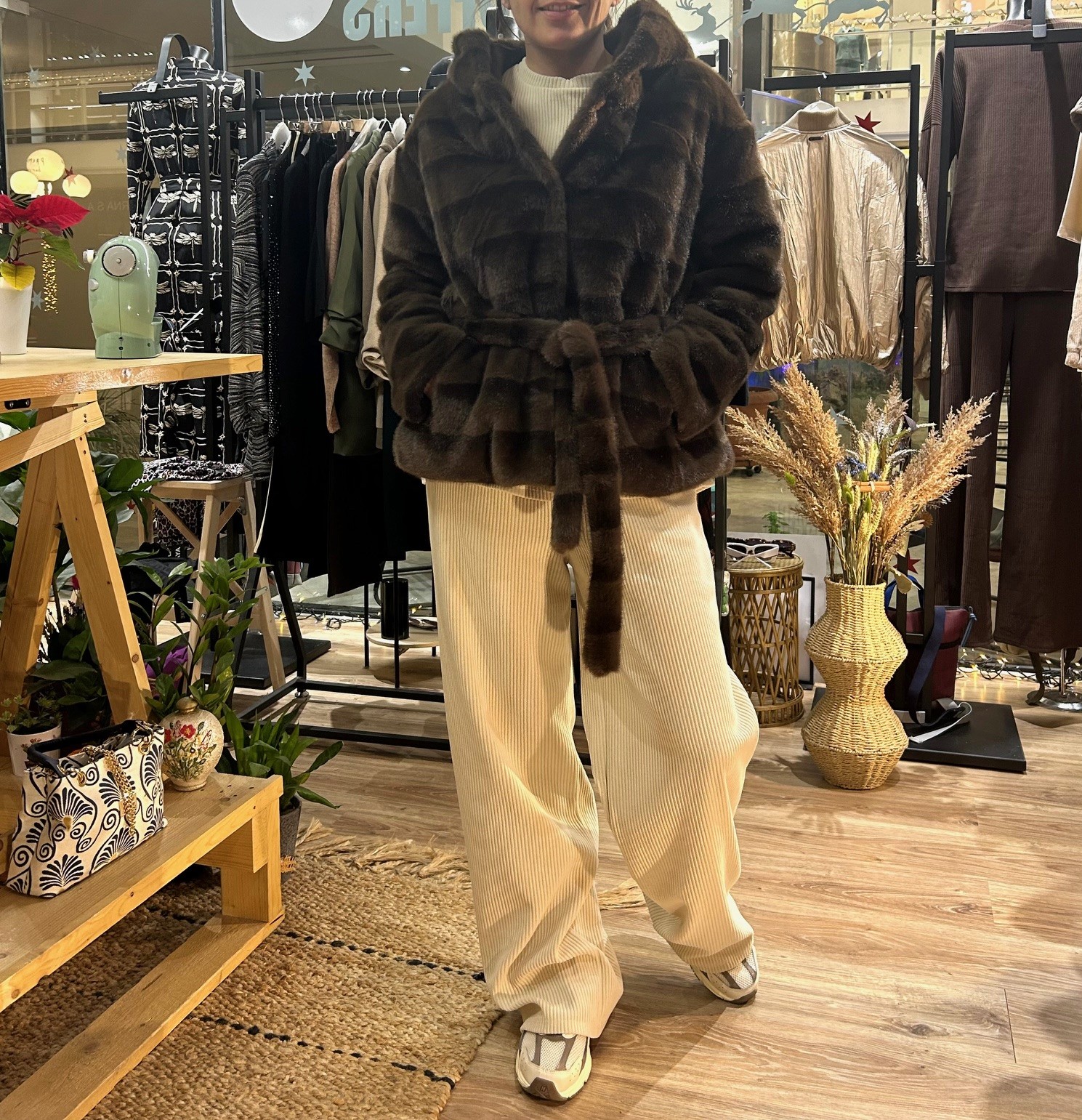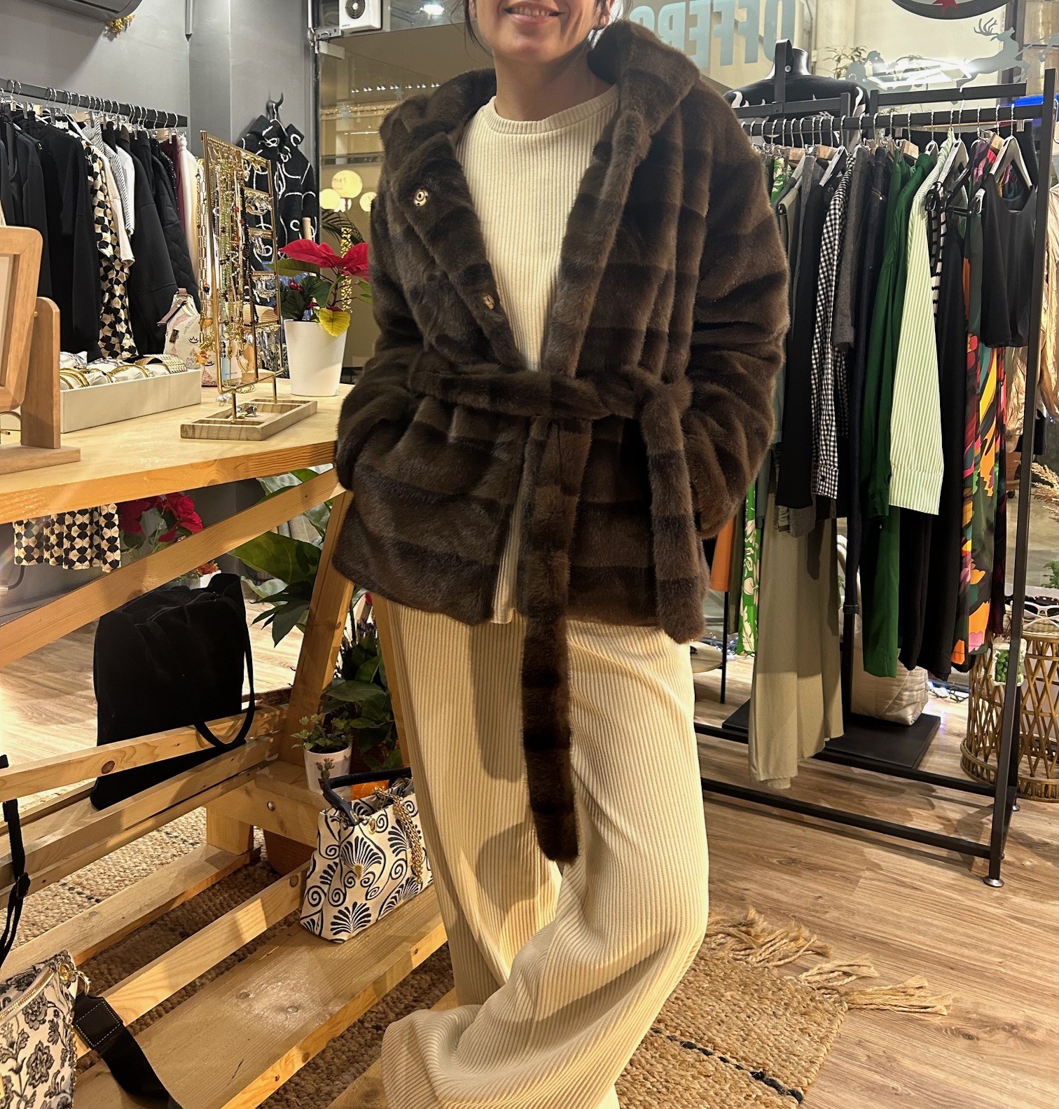 Γούνα καφέ με τσέπες