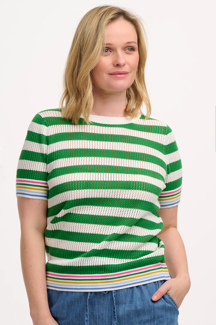 Knit Top – Green/Off-White, Rainbow Tipping- Sugarhill Brighton