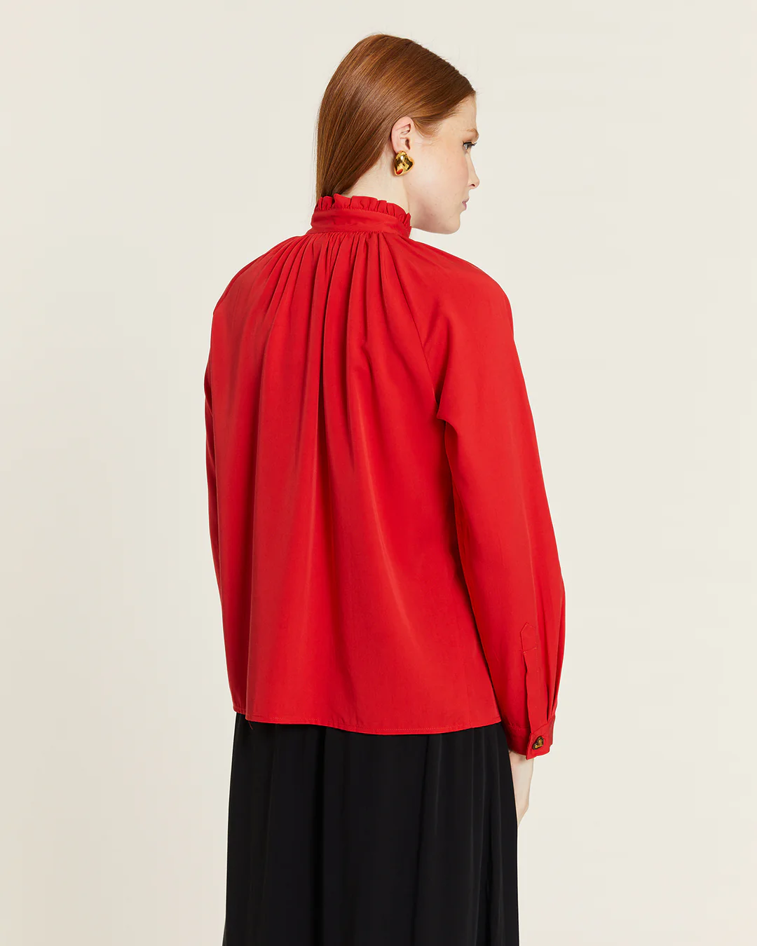 Μπλούζα με ψηλό λαιμό, σούρες και ίσια ρέγκλαν μανίκια.
