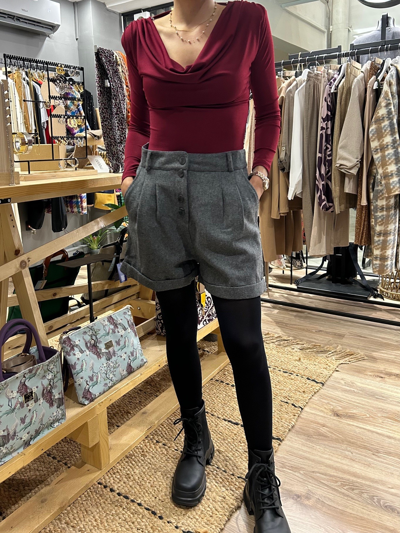 Αναδείξτε τη μοναδικότητά σας με αυτό το εντυπωσιακό κορμάκι διαθέσιμο σε μαύρο και μπορντώ.