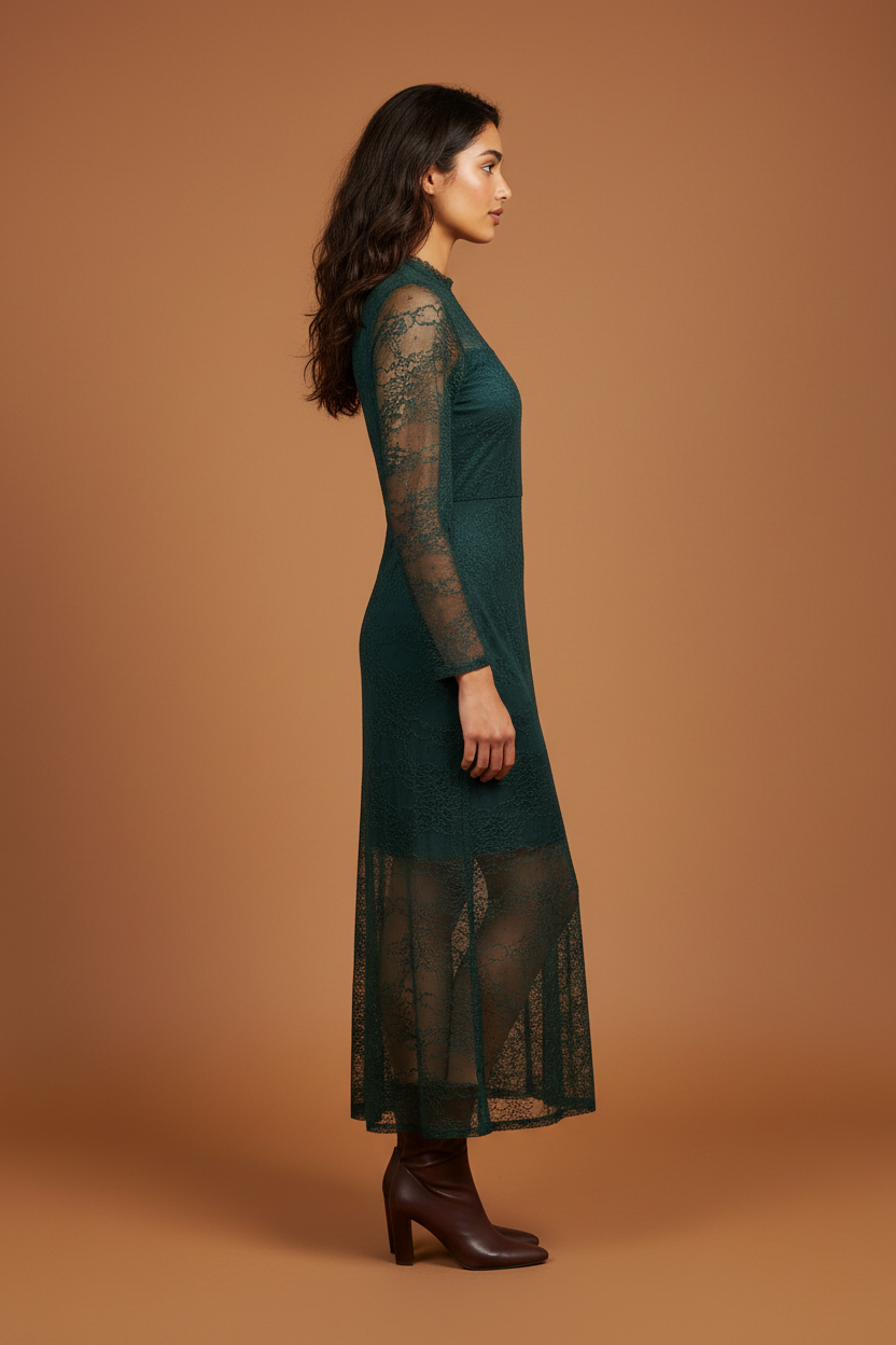 Εντυπωσιακό δαντελένιο φόρεμα σε κυπαρισσί χρώμα που αποπνέει φινέτσα και θηλυκότητα. Διαθέτει εσωτερική φόδρα που φτάνει μέχρι το μέσο του μηρού προσφέροντας άνεση. Ιδανική επιλογή για βραδινές εξόδους, εκδηλώσεις και ιδιαίτερες περιστάσεις, ενώ μπορεί άνετα να φορεθεί και τη μέρα φορώντας μποτάκια και ένα oversized jacket ή oversized δερμάτινο μπουφάν!