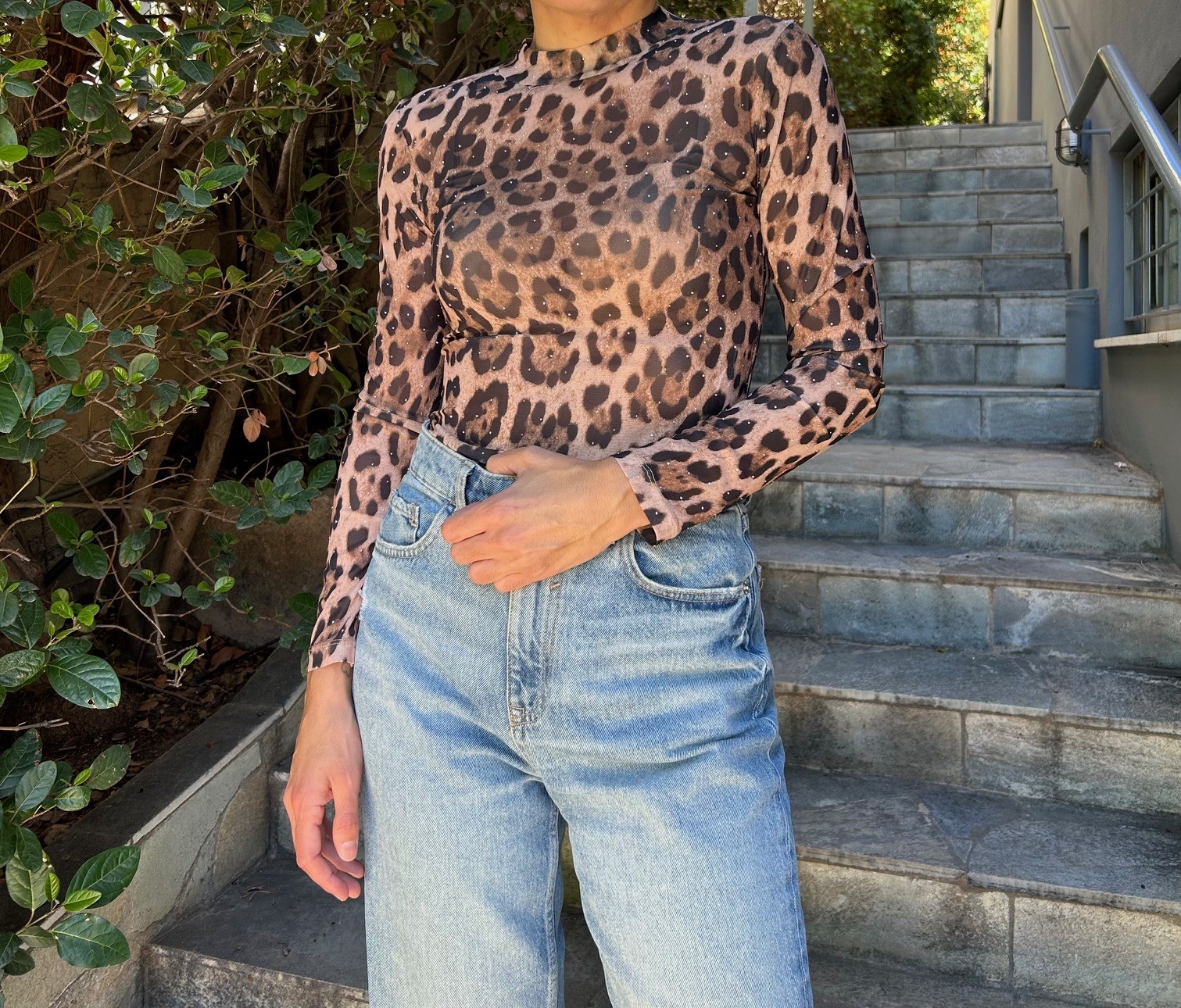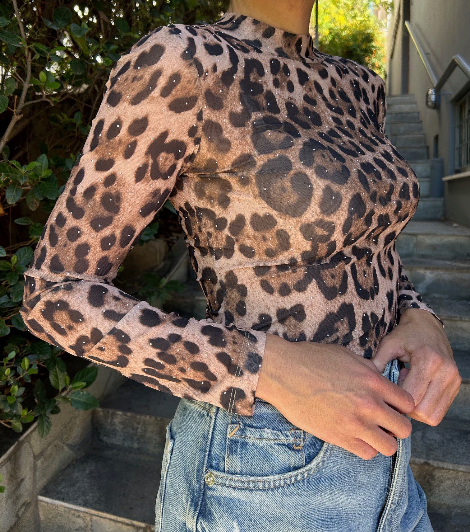 Leopard κορμάκι με διακριτικά στρας