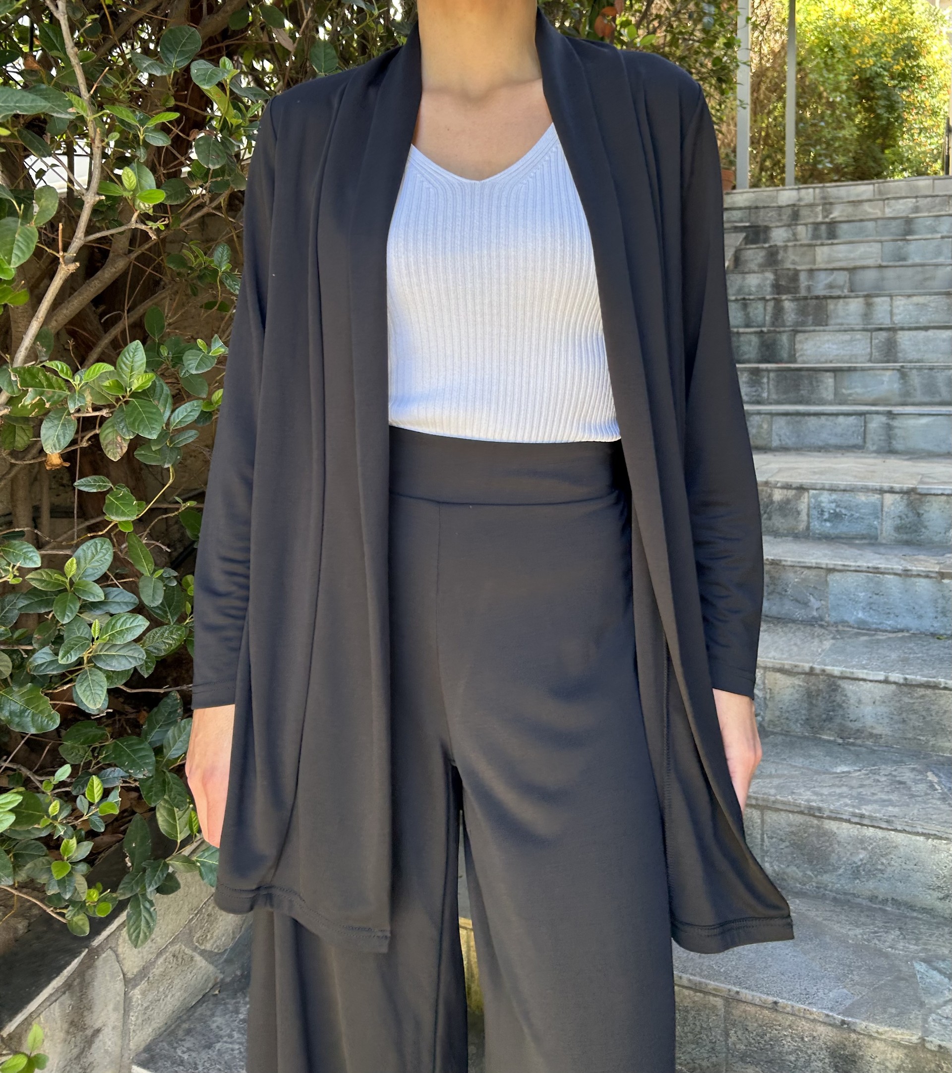 Άνετη ζακέτα με ριχτή γραμμή και minimal σχεδιασμό χωρίς κούμπωμα. Ένα κλασσικό και απαραίτητο κομμάτι σε κάθε γκαρνταρόμπα. Φοριέται εύκολα από το πρωί μέχρι το βράδυ.