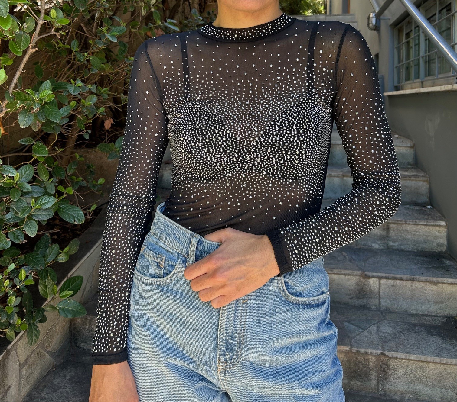 Το κορμάκι με στρας είναι το απόλυτο κομμάτι για εντυπωσιακές εμφανίσεις. Έχει διακριτικά διαφανές ύφασμα ενώ οι λαμπερές λεπτομέρειες με στρας το κάνουν να ξεχωρίζει σε κάθε περίσταση.