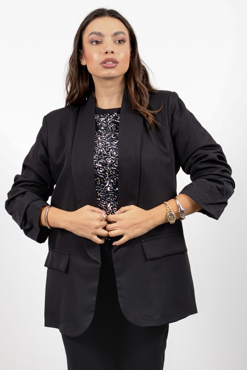 Κομψό σακάκι που αναβαθμίζει κάθε εμφάνιση. Η διακριτική σούρα στο μανίκι προσθέτει μια μοντέρνα πινελιά, ενώ η άνετη γραμμή του το καθιστά ιδανικό για όλη τη μέρα, από το γραφείο έως τις βραδινές σας εξόδους. Ένα απαραίτητο κομμάτι σε κάθε γκαρνταρόμπα!