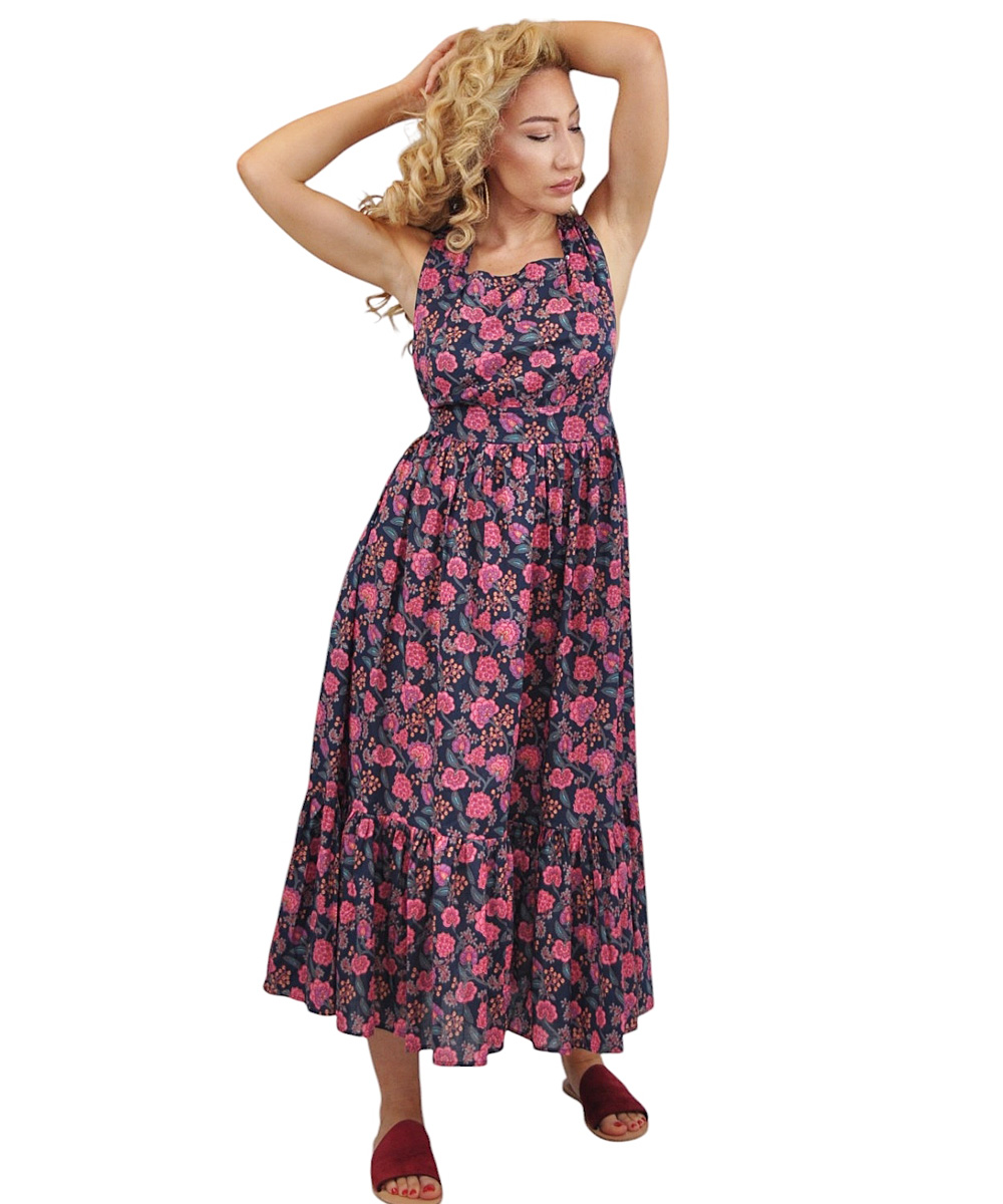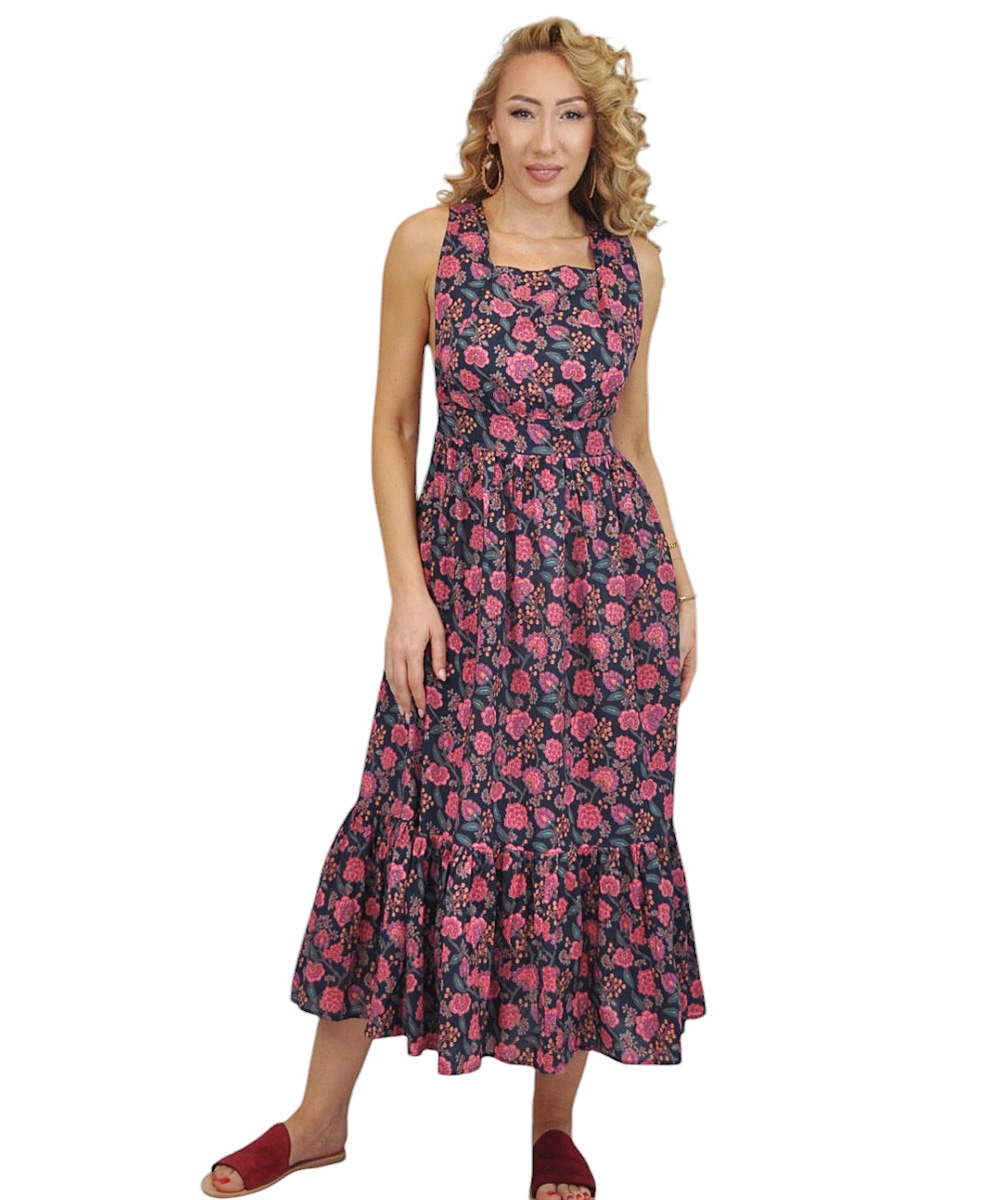 Midi floral βαμβακερό φόρεμα που συνδυάζει ρομαντισμό και καλοκαιρινή φρεσκάδα. Το δροσερό βαμβακερό ύφασμα προσφέρει άνεση καθ’ όλη τη διάρκεια της ημέρας, ενώ το floral μοτίβο χαρίζει θηλυκή και κομψή αισθητική. Η χιαστή ανοιχτή πλάτη προσθέτει μια εντυπωσιακή λεπτομέρεια που αναδεικνύει διακριτικά το σώμα και είναι ιδανική για τις ζεστές ημέρες.