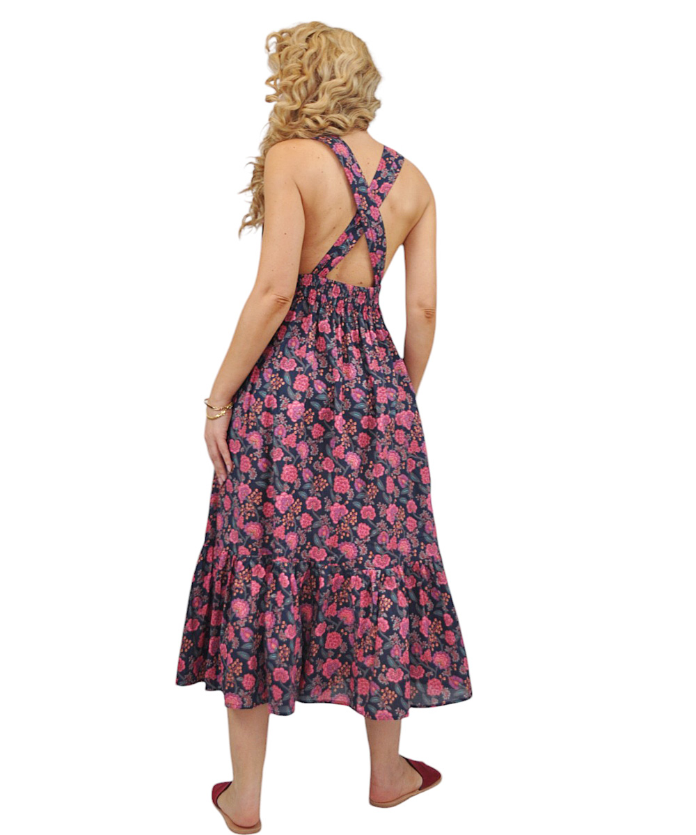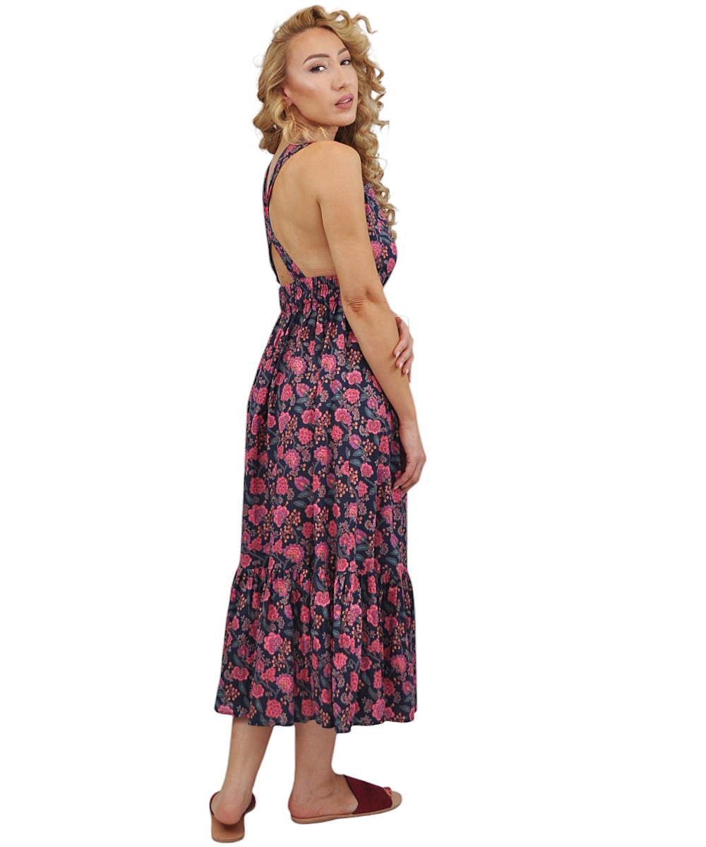 Midi floral βαμβακερό φόρεμα με ανοιχτή πλάτη