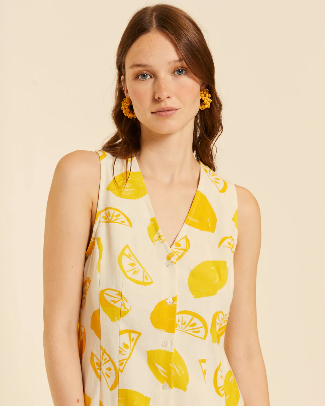 Ανακάλυψε το mini φόρεμα με λεμόνια από την Pepaloves- ένα ζωηρό κομμάτι που φέρνει κατευθείαν καλοκαιρινό mood στην εμφάνισή σου. Το φωτεινό print με λεμόνια δίνει ένταση και φρεσκάδα, ενώ η γραμμή του κολακεύει χωρίς να περιορίζει, κάνοντάς το ιδανικό για all-day looks.