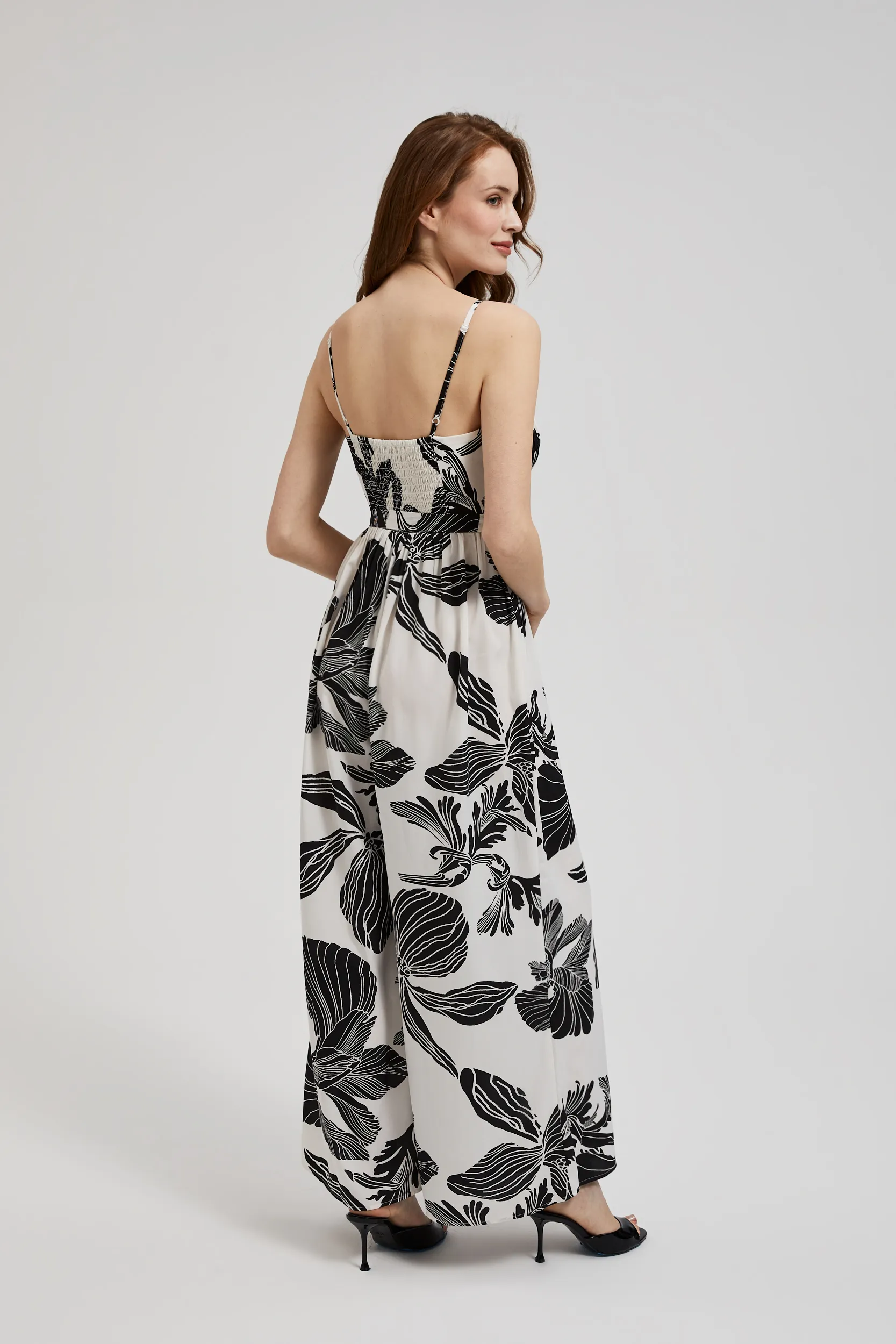 Ολόσωμη φόρεμα με τιράντες. Συνδυάζει κομψότητα και άνεση. Στην πλάτη είναι ελαστική για μεγαλύτερη άνεση. Ένα πολύ βολικό και εύκολο ρούχο που μπορεί να φορεθεί όλη μέρα, αλλά ταυτόχρονα είναι κομψό και ιδιαίτερο.