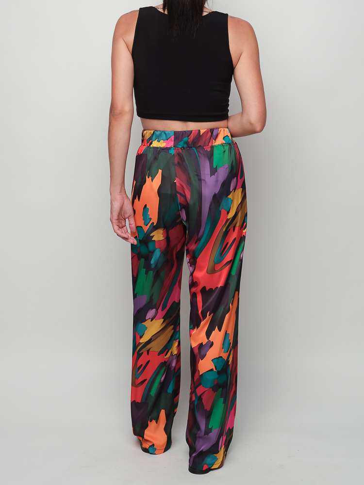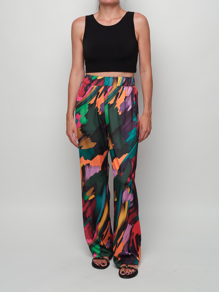 Statement ψηλόμεση παντελόνα από τη Victoria Haitoglou που συνδυάζει άνεση και εντυπωσιακό στυλ! Με ελαστικό λάστιχο στη μέση για τέλεια εφαρμογή και μοναδικό print σε μαύρο φόντο, είναι ιδανική για καθημερινές ή πιο ιδιαίτερες εμφανίσεις.