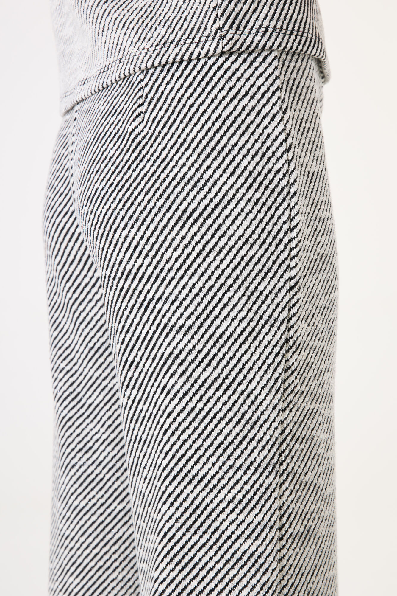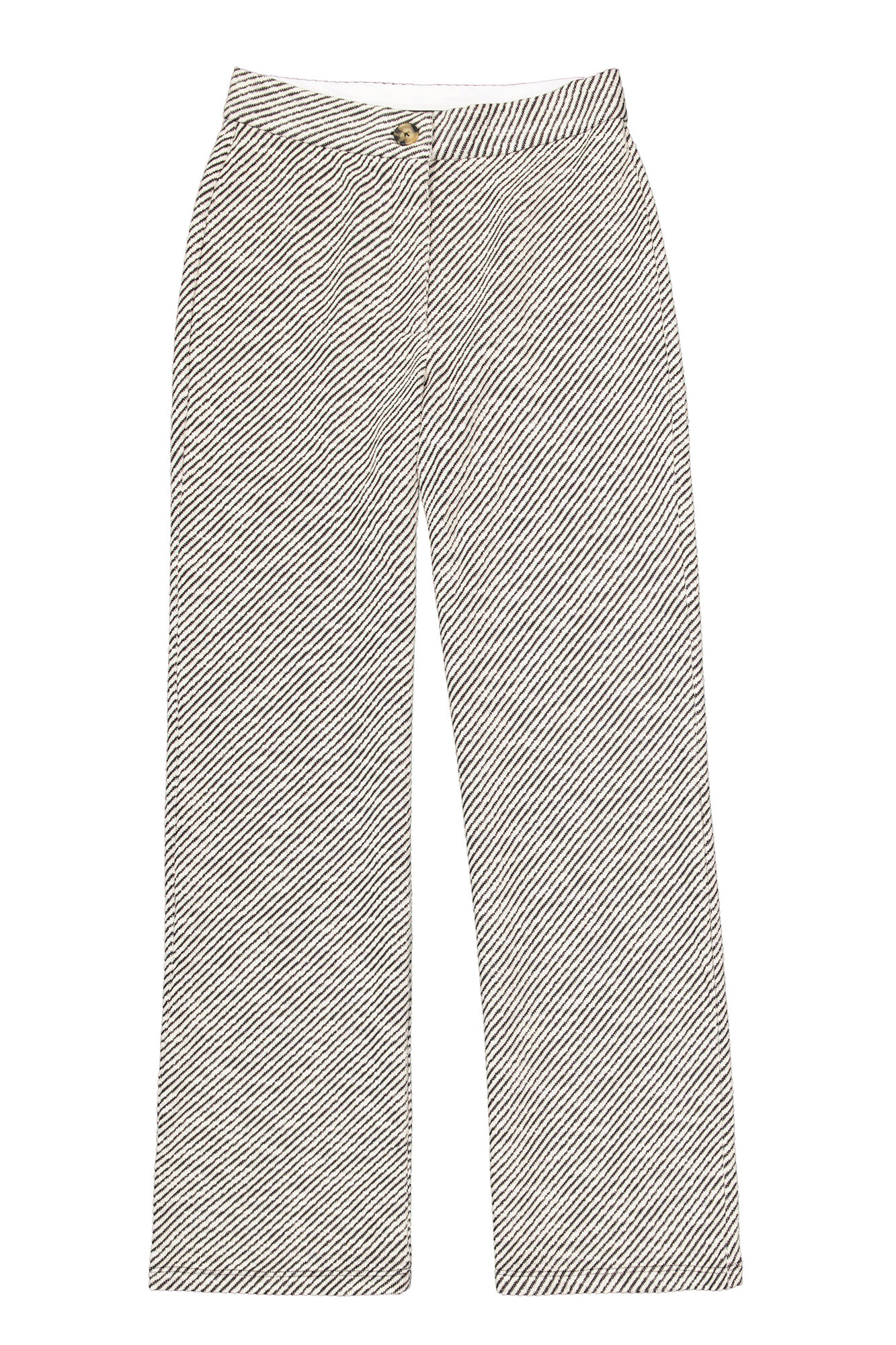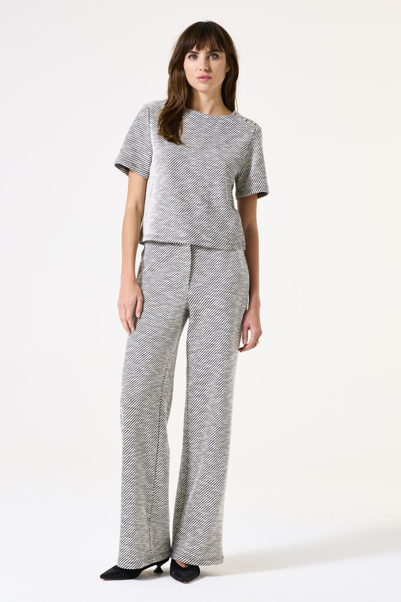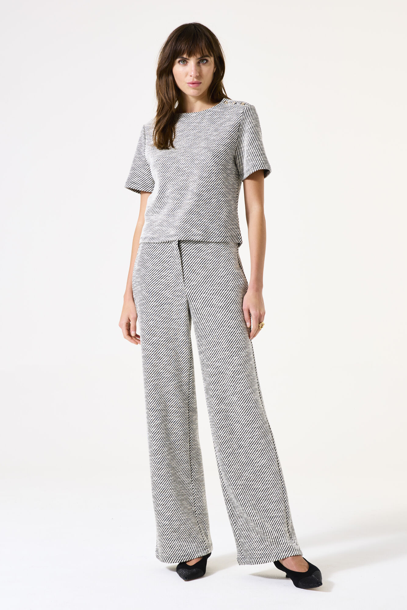 Ψηλόμεσο παντελόνι με σχέδιο ζακάρ. Κλείνει με κουμπί και φερμουάρ και έχει άνετη γραμμή. Διαθέτει και μεταλλικό νήμα, το οποίο δίνει μια διακριτική λάμψη στο ύφασμα!
