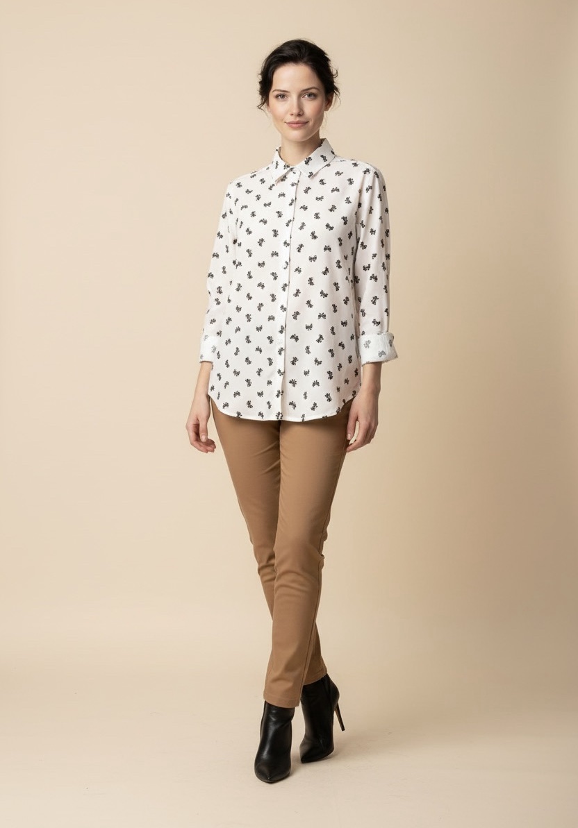 Αυτό το πουκάμισο με print κορδέλες είναι ένα απαραίτητο κομμάτι της ανοιξιάτική σας γκαρνταρόμπας . Κατασκευασμένο από βαμβάκι, προσφέρει ωραία αίσθηση και άνεση καθ’ όλη τη διάρκεια της ημέρας.