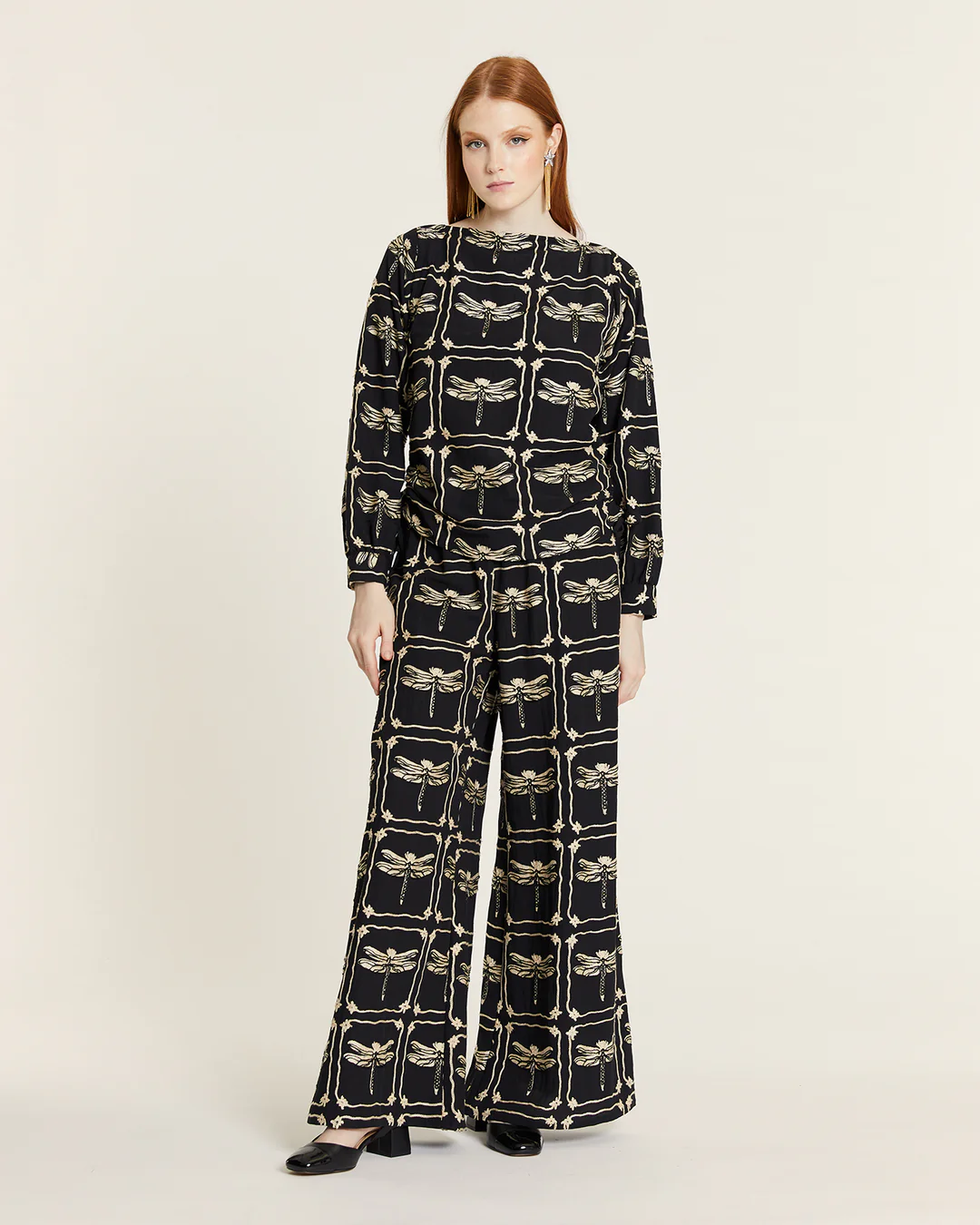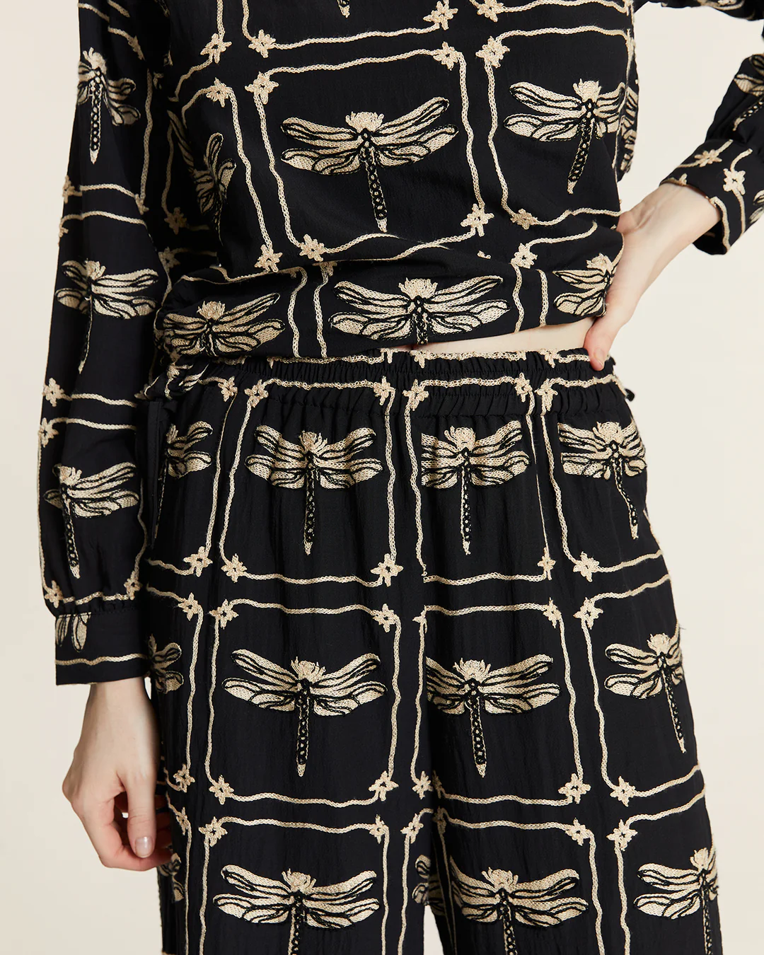 Ψηλόμεση παντελόνα με κεντημένες λιβελούλες-Pepaloves