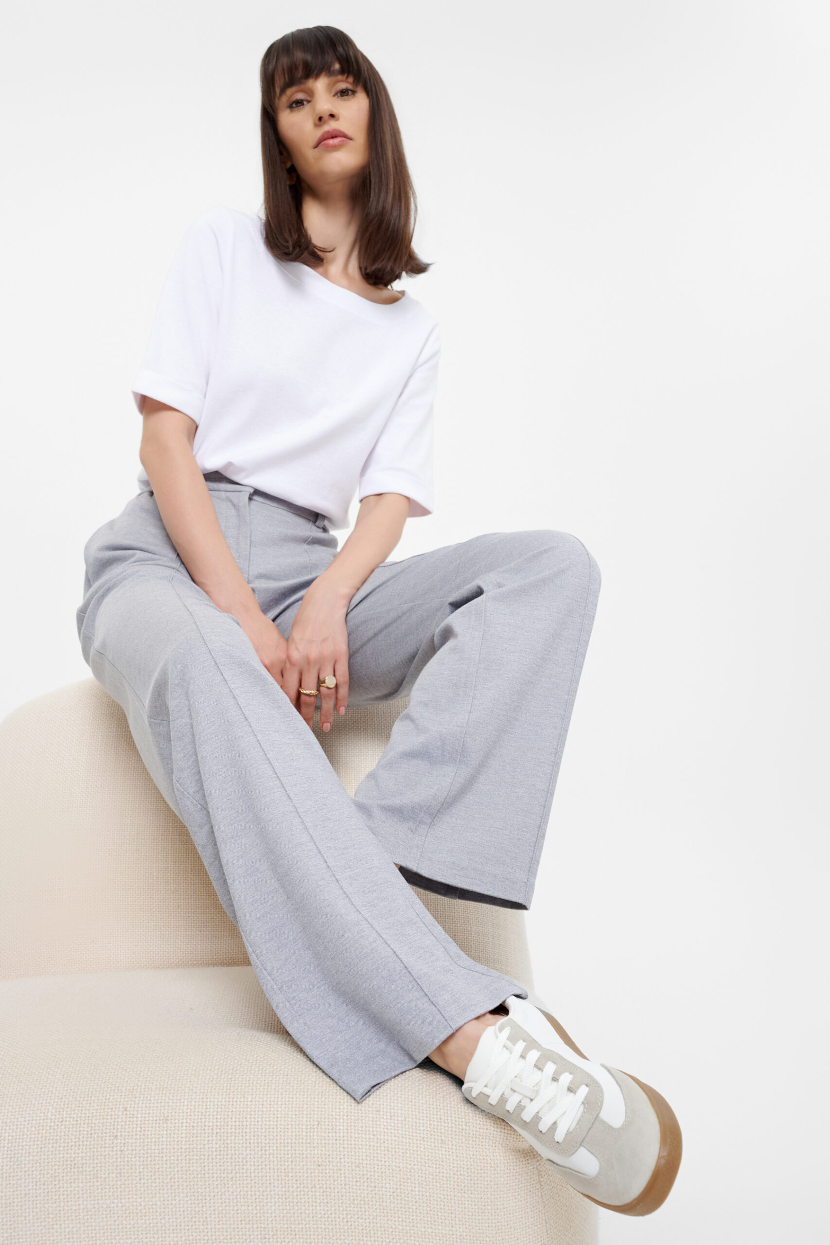 Ψηλόμεσο παντελόνι. Ιδανική επιλογή για κομψές και άνετες εμφανίσεις. Φτιαγμένο από υψηλής ποιότητας βισκόζη, αυτό το παντελόνι προσφέρει μια αέρινη και απαλή αίσθηση, αγκαλιάζοντας το σώμα με εξαιρετική άνεση. Η ψηλόμεση γραμμή του αναδεικνύει τη μέση και διαθέτει λάστιχο στο πίσω μέρος για καλύτερη εφαρμογή και άνεση.