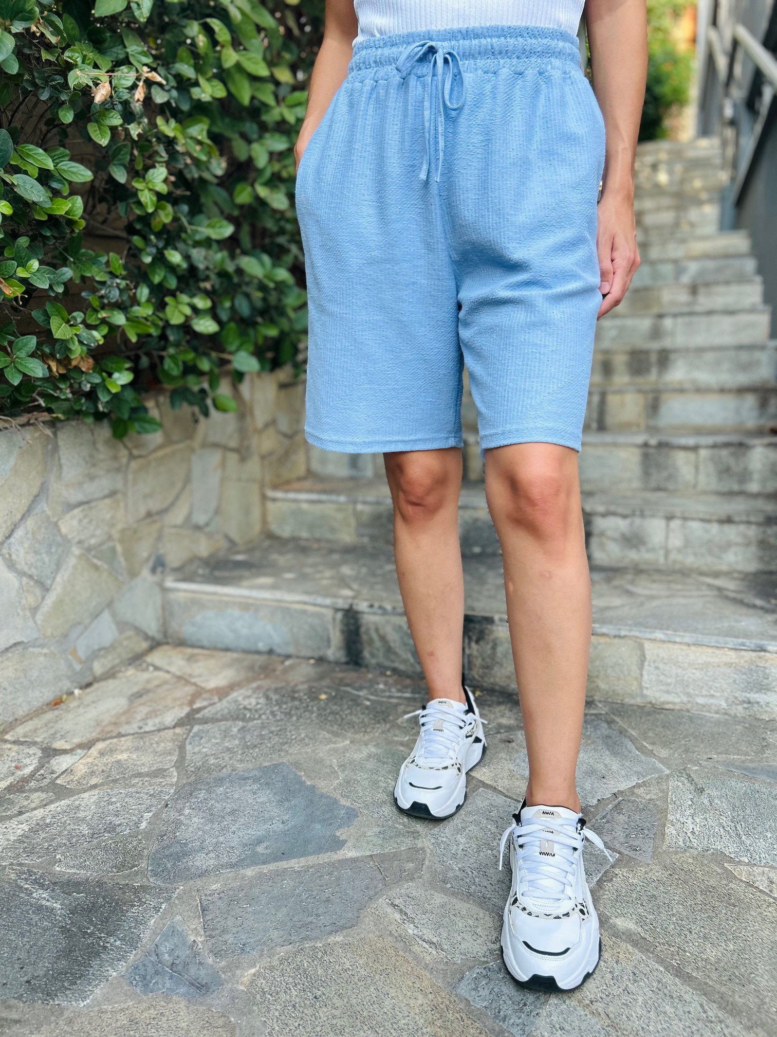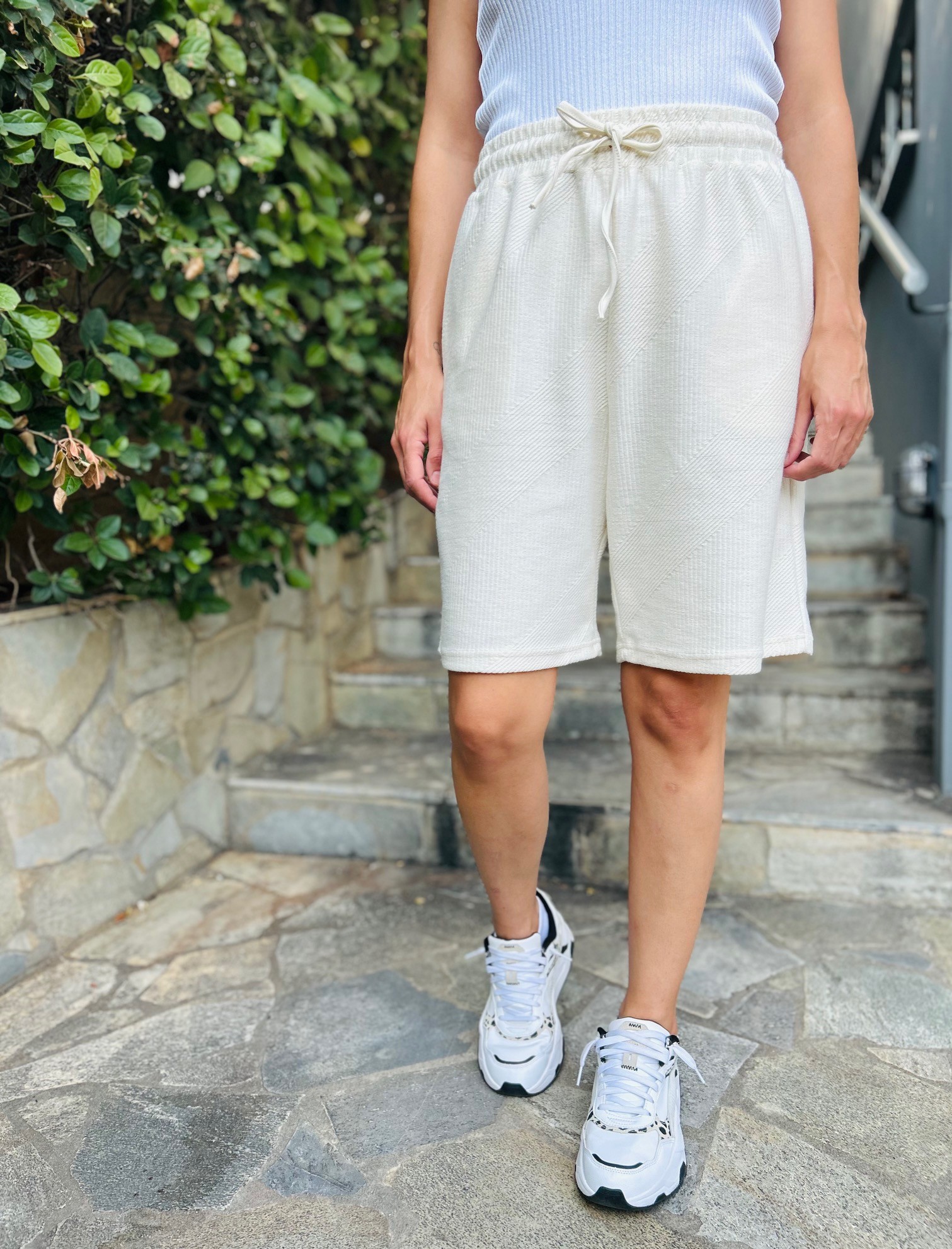 Ανακαλύψτε το απόλυτο must-have για τις καλοκαιρινές σας εμφανίσεις! Αυτή η βερμούδα σε απαλές αποχρώσεις συνδυάζει στυλ, άνεση και οικολογική συνείδηση.