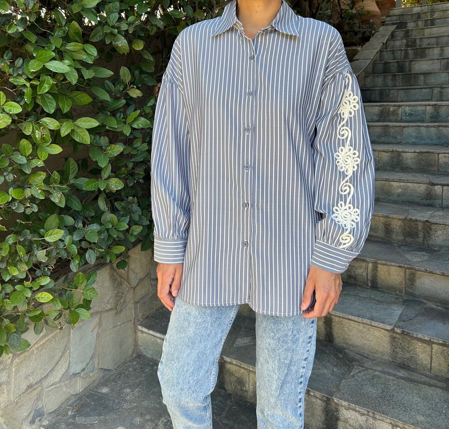 Ριγέ πουκάμισο με κέντημα στα μανίκια