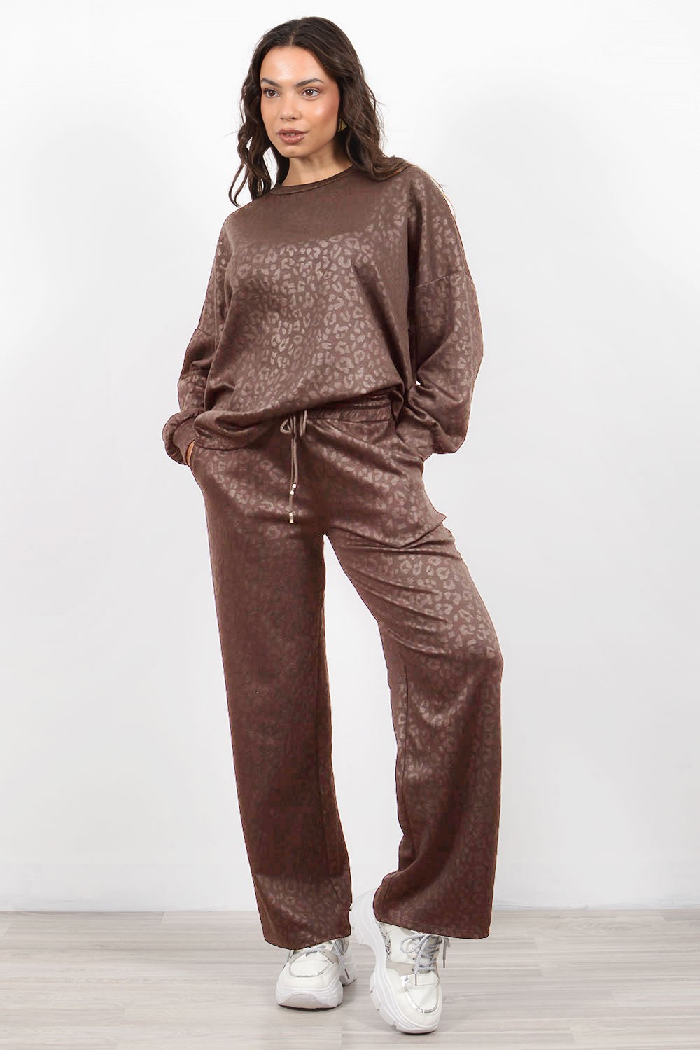 Σετ φόρμα παντελόνι & μπλούζα καφέ λεοπάρ