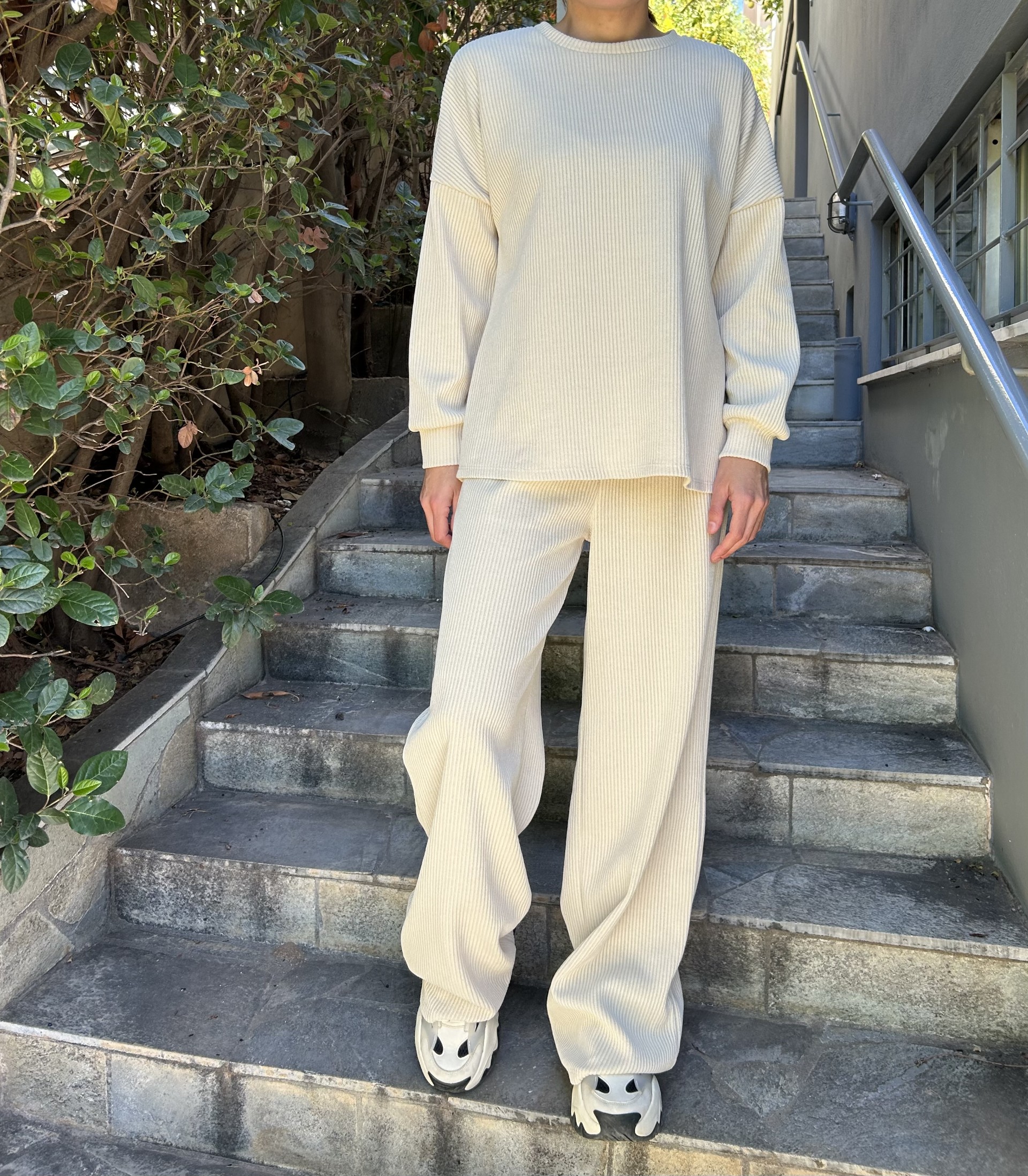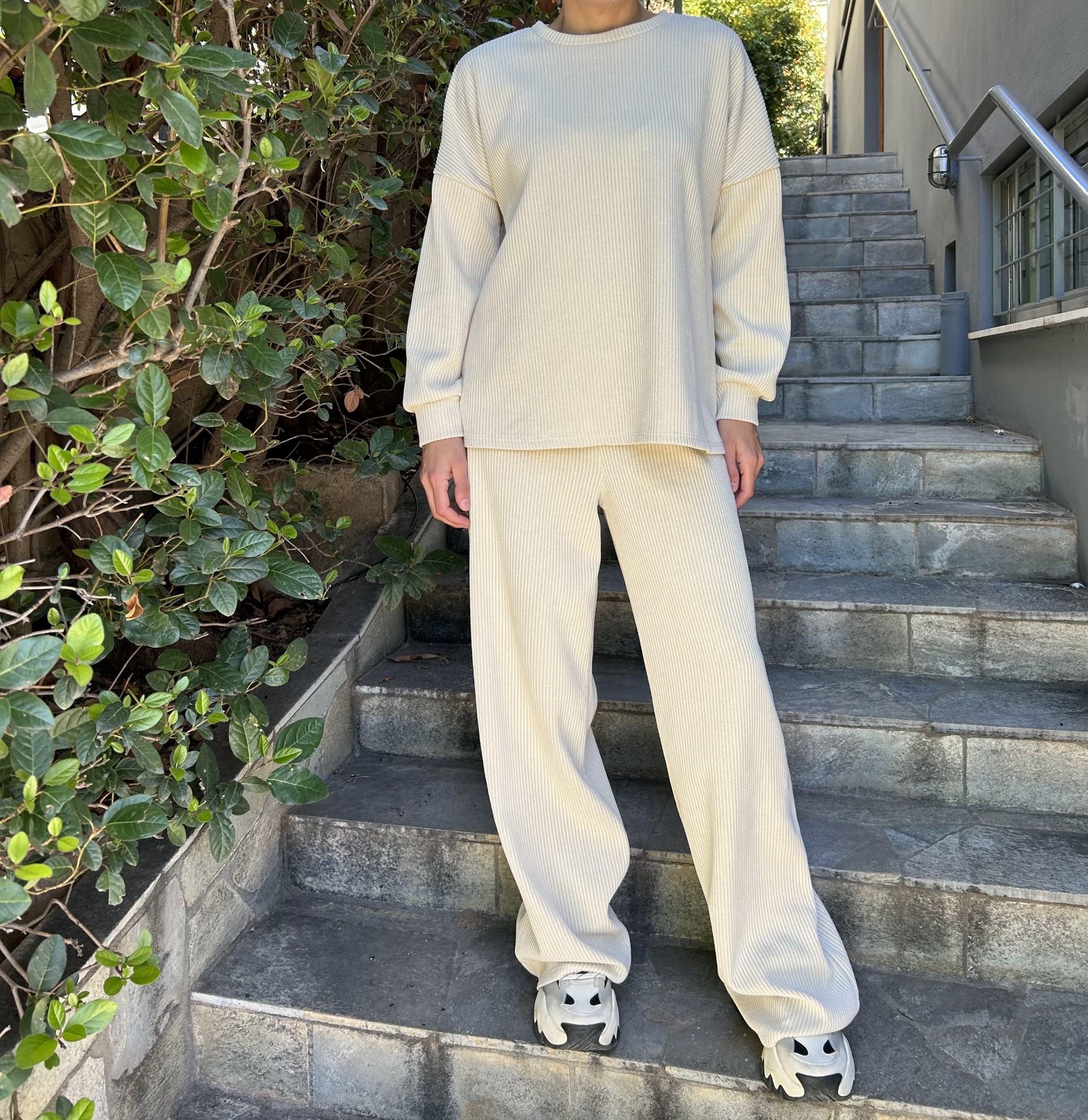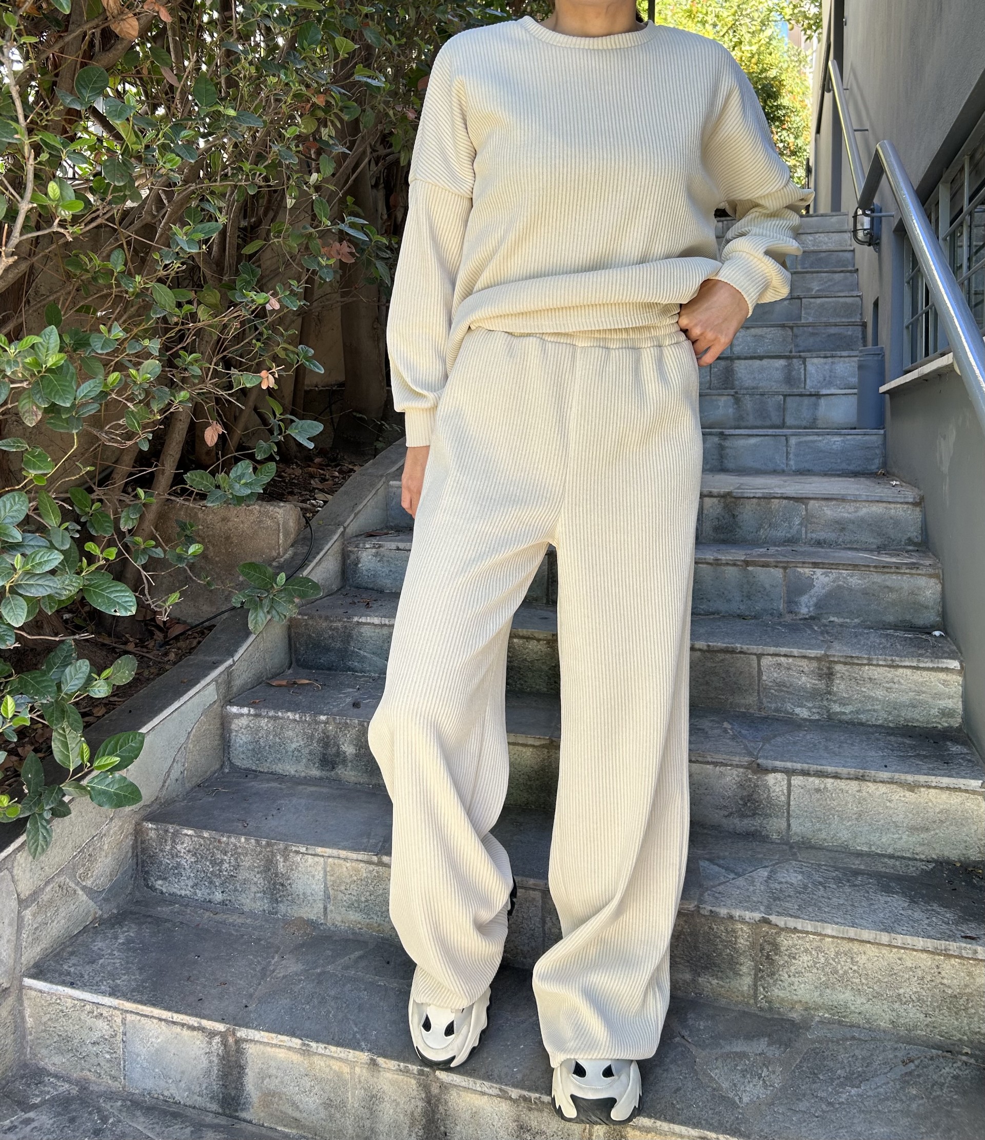 Σετ ριπ εκρού παντελόνι-μπλούζα