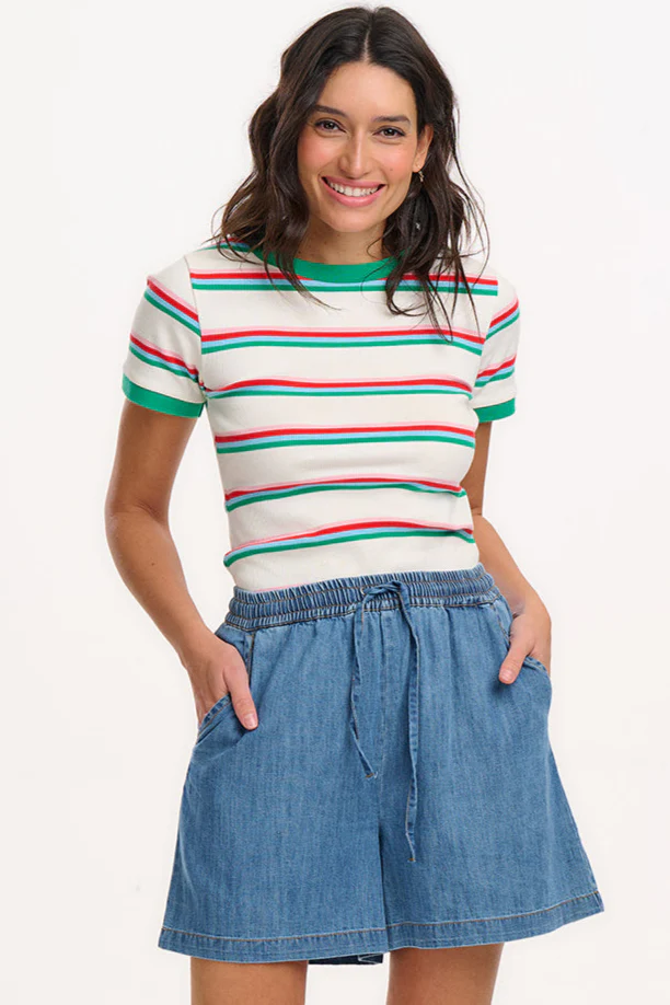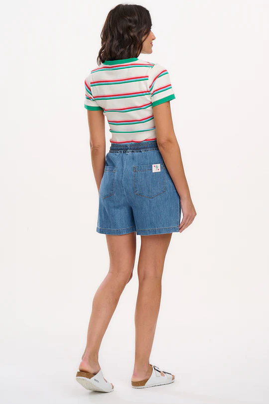 Διαχρονικό τζιν σορτς από μεσαίου βάρους τζιν, σχεδιασμένο με τσέπη στο πίσω μέρος και ετικέτα της εταιρίας Sugarhill Brighton. Έχει ελαστική μέση και διαθέτει και λάστιχο για εξαιρετική εφαρμογή!