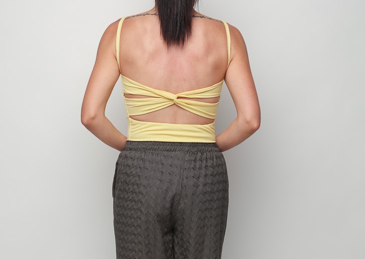 Προσθέστε μια μοναδική πινελιά στο στυλ σας με το τοπ με στριφτή πλάτη της Victoria Haitoglou.