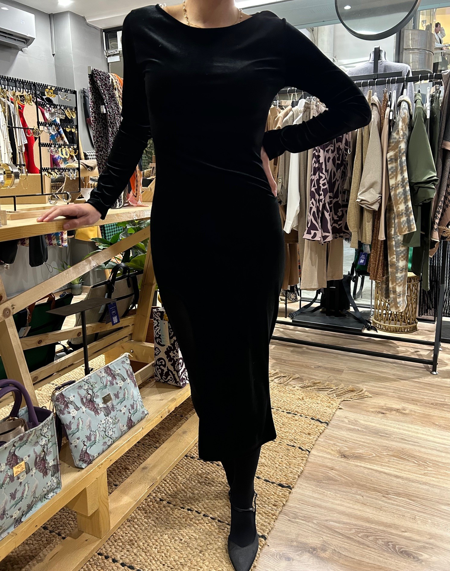 Αναδείξτε την κομψότητά σας με αυτό το εντυπωσιακό μακρύ βελούδινο φόρεμα, ιδανικό για επίσημες εκδηλώσεις και βραδινές εμφανίσεις. Αγκαλιάζει τη σιλουέτα και προσφέρει απαλή υφή.