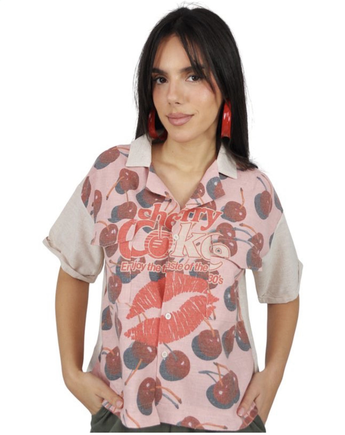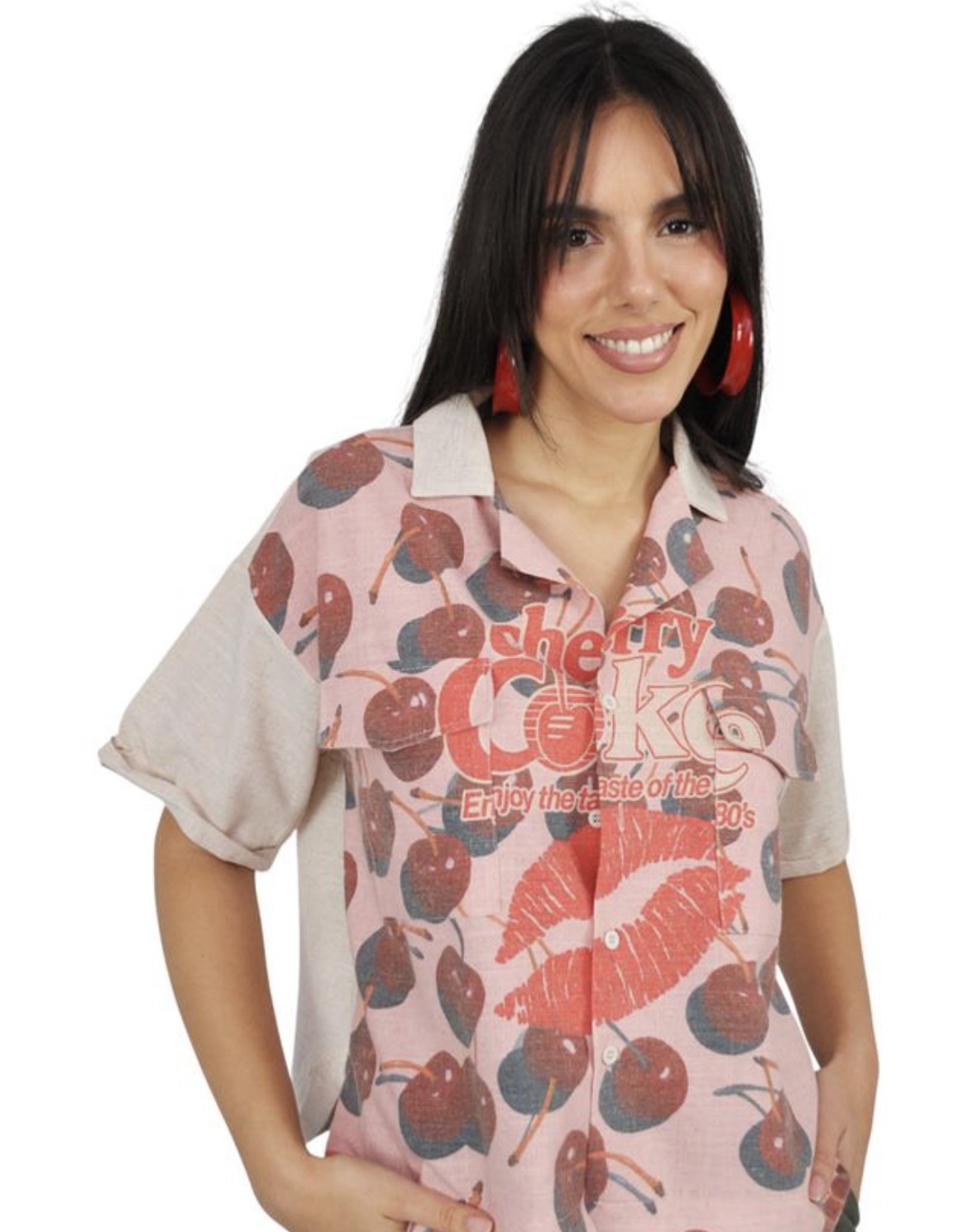 Vintage βαμβακερό πουκάμισο με print Cherries