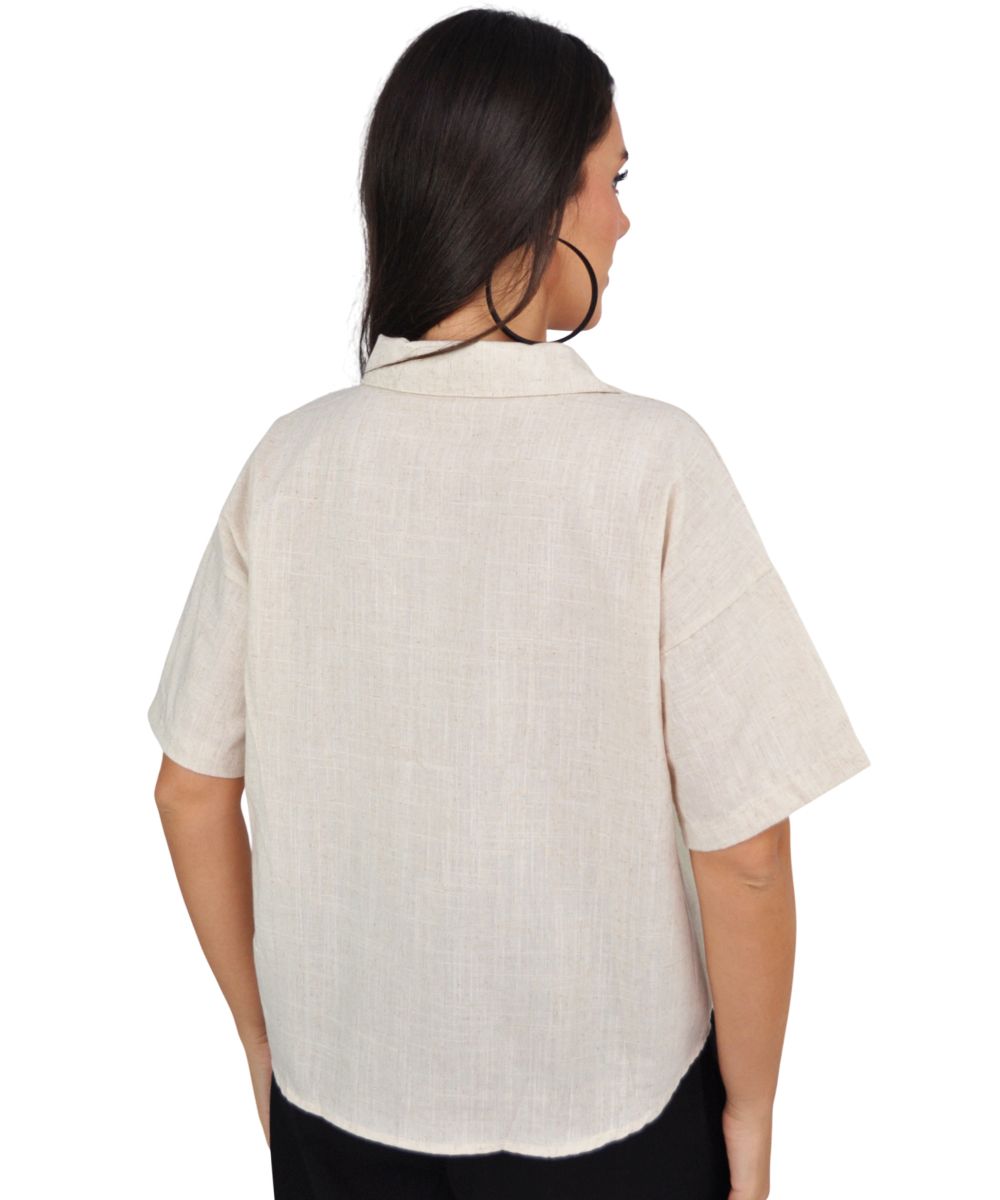 Κοντομάνικο βαμβακερό πουκάμισο σε μπεζ απόχρωση με ιδιαίτερο print, που ξεχωρίζει για το μοναδικό του στυλ. Ένα statement κομμάτι που αναβαθμίζει εύκολα κάθε εμφάνιση, ιδανικό για όσες θέλουν να δώσουν χαρακτήρα στο look τους.