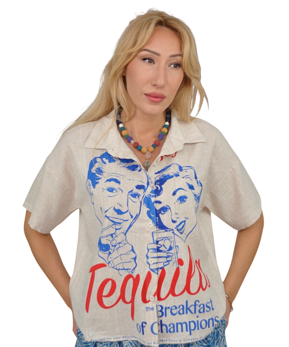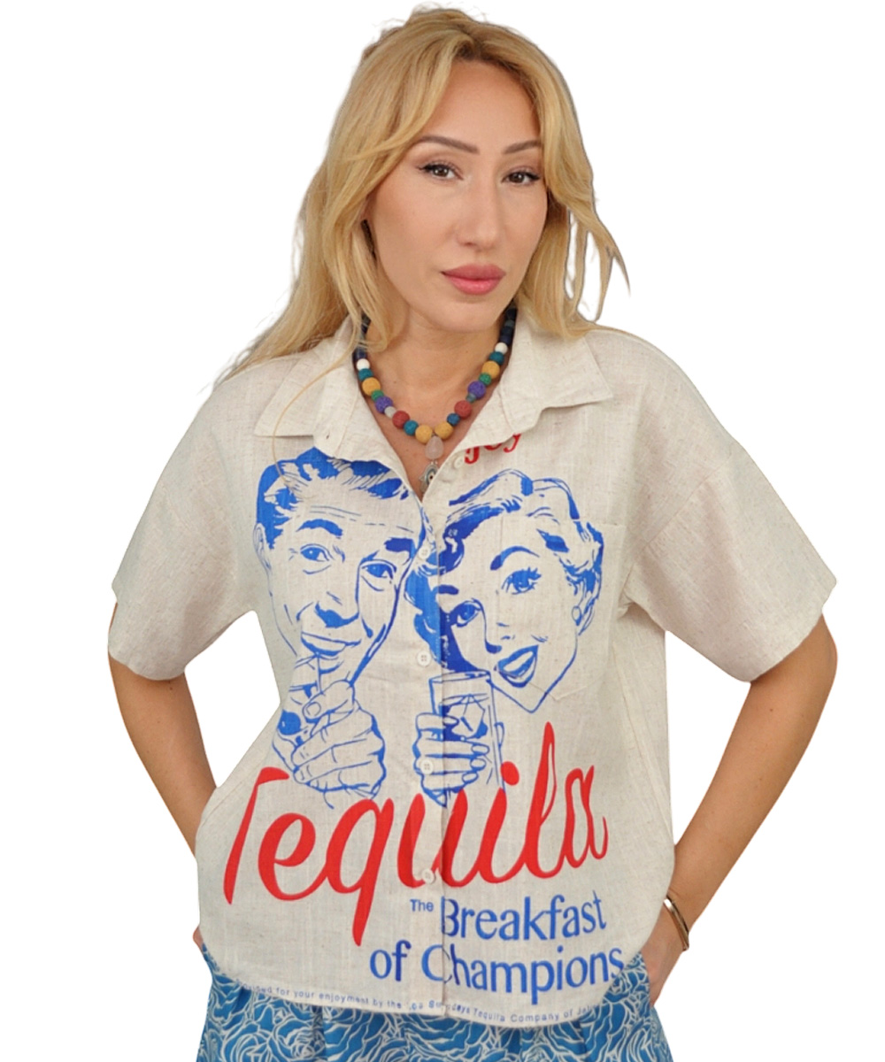 Vintage βαμβακερό πουκάμισο με print Tequila