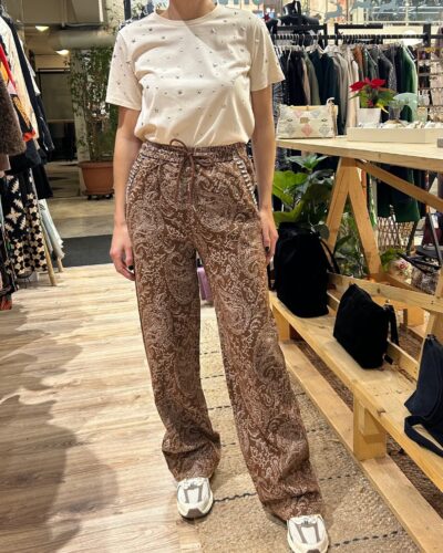 Το παντελόνι διαθέτει ελαστική μέση με φαρδύ λάστιχο για άνετη εφαρμογή και μια διακριτική ρίγα στο πλάι που προσδίδει μοντέρνο στυλ. Η μπλούζα με τη στρογγυλή λαιμόκοψη και τη ρίγα στις πλευρές ολοκληρώνει την εμφάνιση με αρμονικό και chic τρόπο. Στο πίσω μέρος της πέφτει πιο χαμηλά για μεγαλύτερη άνεση.